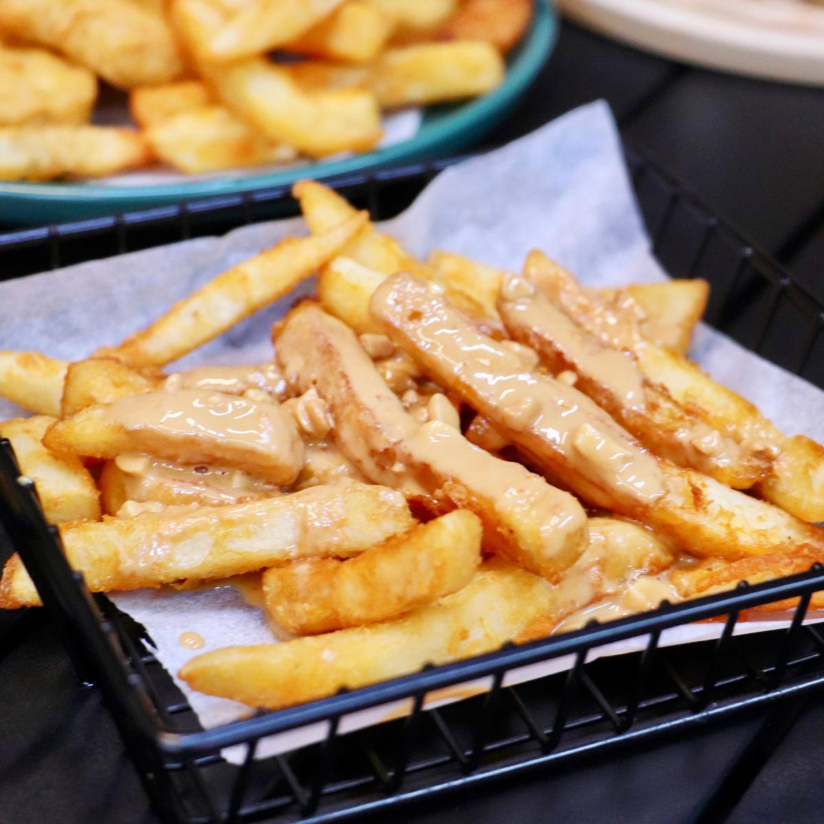 The French fries are crispy on the outside and soft on the inside. They are delicious American French fries. However, I personally feel that eating too much peanut butter will make them a bit greasy⋯⋯
