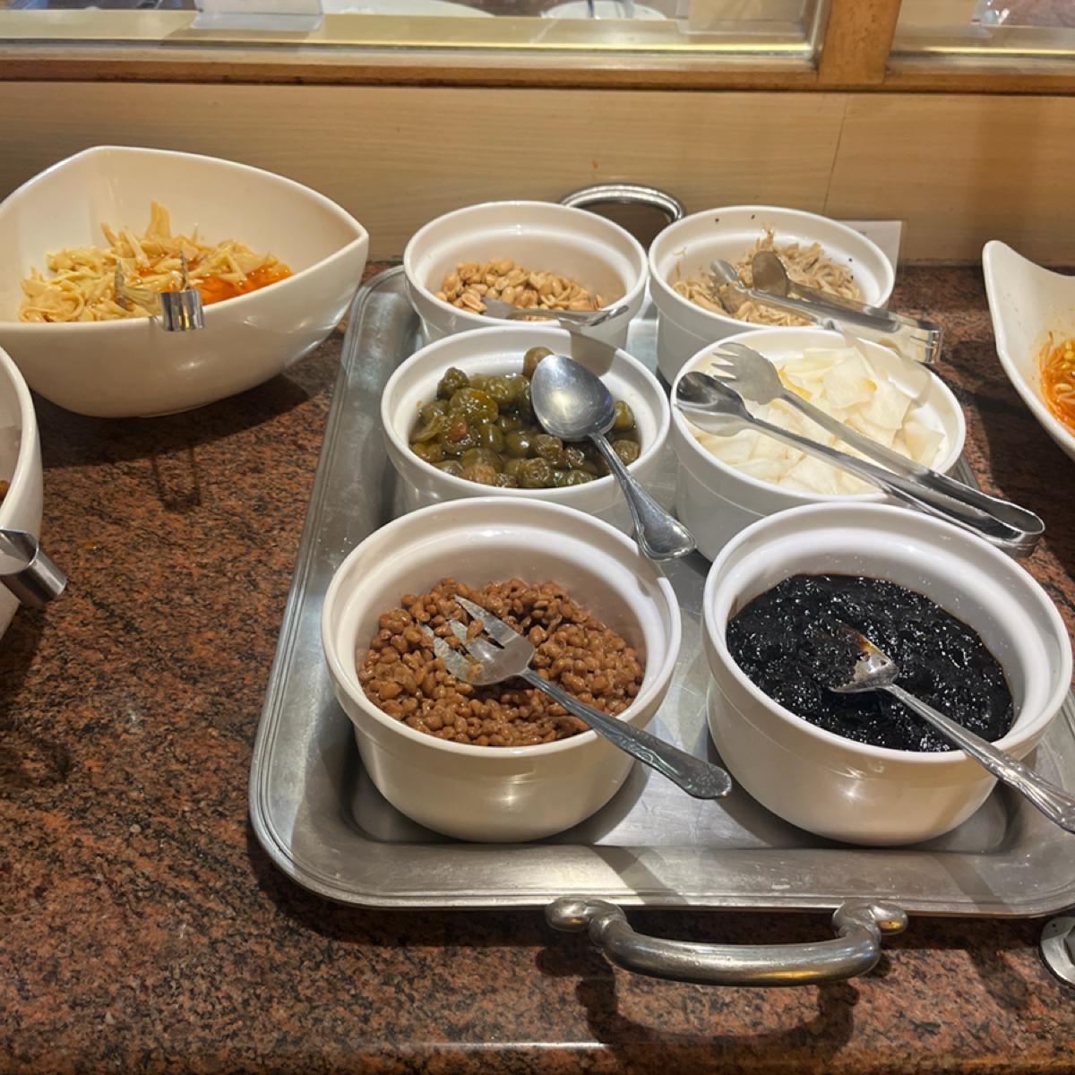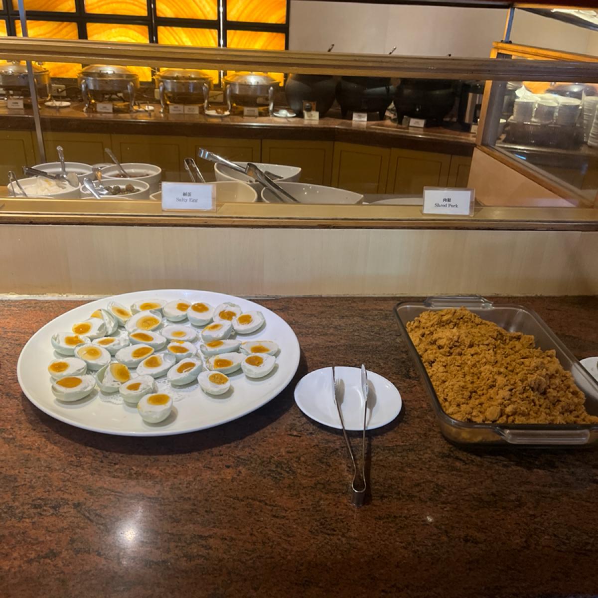 I first served myself a bowl of plain porridge with side dishes, which was refreshing. Then I tried the scrambled eggs and bacon; the taste and texture were similar to those of typical business hotels, not outstanding but also without any mistakes. The croissant had a soft texture, and it became crispier after toasting.