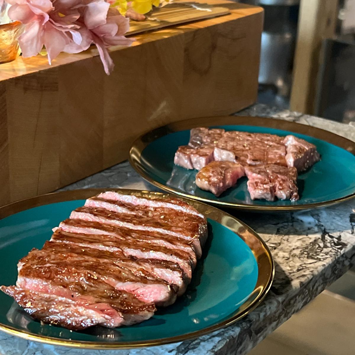 You can enjoy a wide variety of Wagyu, with so many cuts that you might wonder if it includes parts from an entire cow. The portions are enough for two people, but it feels just right for three. When the meat platter is served, it looks very impressive. The set meal also includes a fresh vegetable salad, drinks, desserts, oysters 🦪, and angel shrimp 🦐 scallops. Highly recommended for first-time visitors.