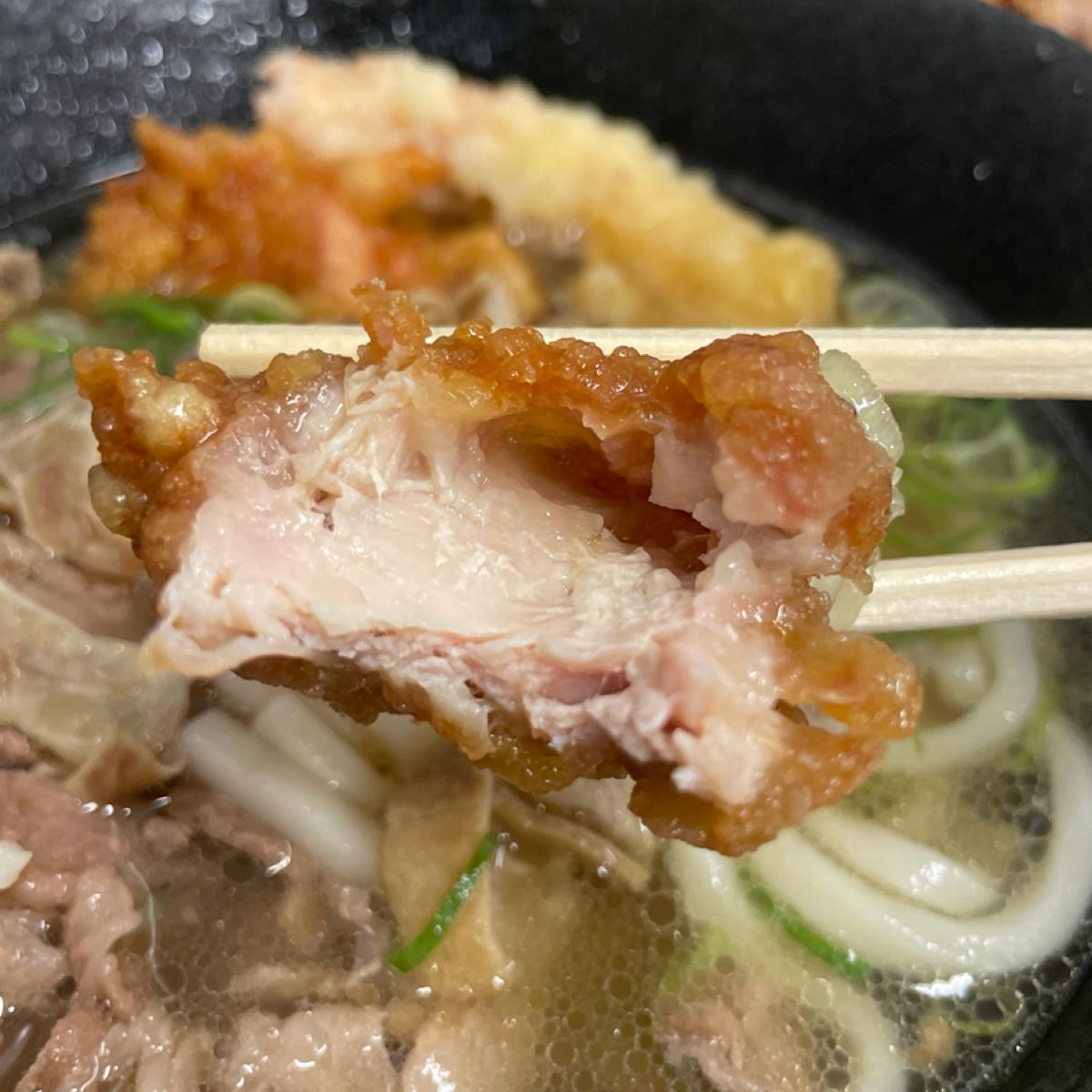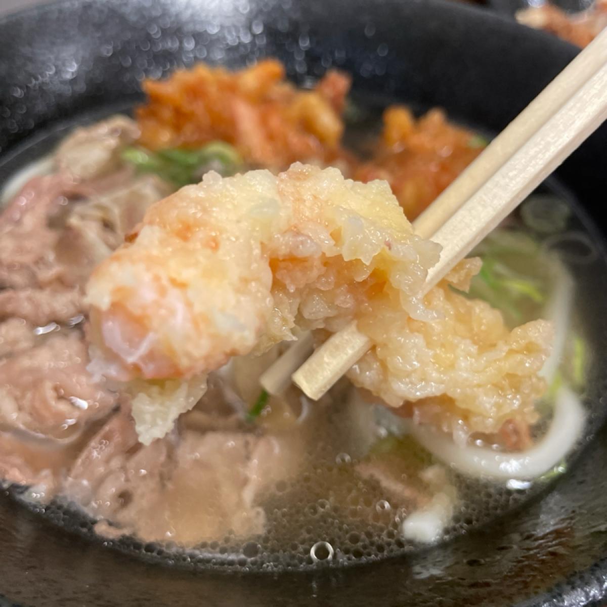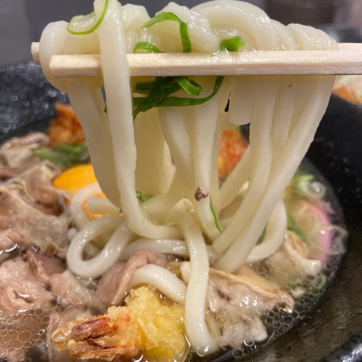 This is a mixed udon with a lot of different ingredients🤣, including fried chicken, fried shrimp, beef (beef offal), and an egg. I sincerely think the broth is amazing, with a nice bonito aroma, and it is not too salty.