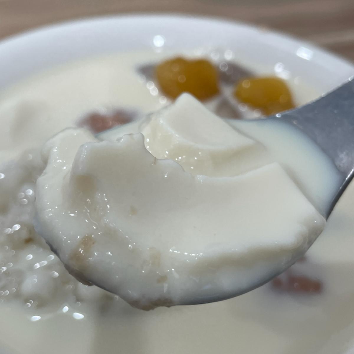 The tofu pudding has a very smooth texture, and the soy milk is mildly sweet, blending well with the tofu pudding to create a rich bean aroma in the bowl!
