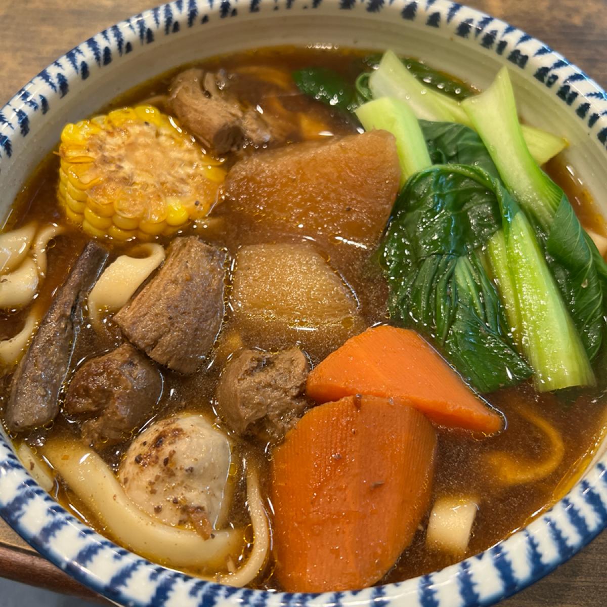 The braised noodles are thick and elastic, with very tasty carrots and white radish, vegetarian meat made from shiitake mushrooms, and green vegetables. The soup base is boiled with old ginger, which is rich and flavorful. It is very warm when eaten in winter.