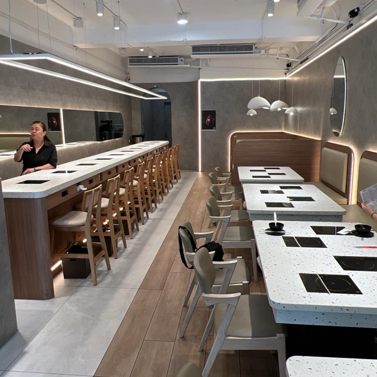 Very close to the MRT station, about a 2-minute walk. The decor is bright and clean, making passersby stop and see what is being sold. We were the second group of guests that day, and both the ingredient area and the beverage area were kept very clean. The space between tables was not too cramped, making for a very pleasant environment.