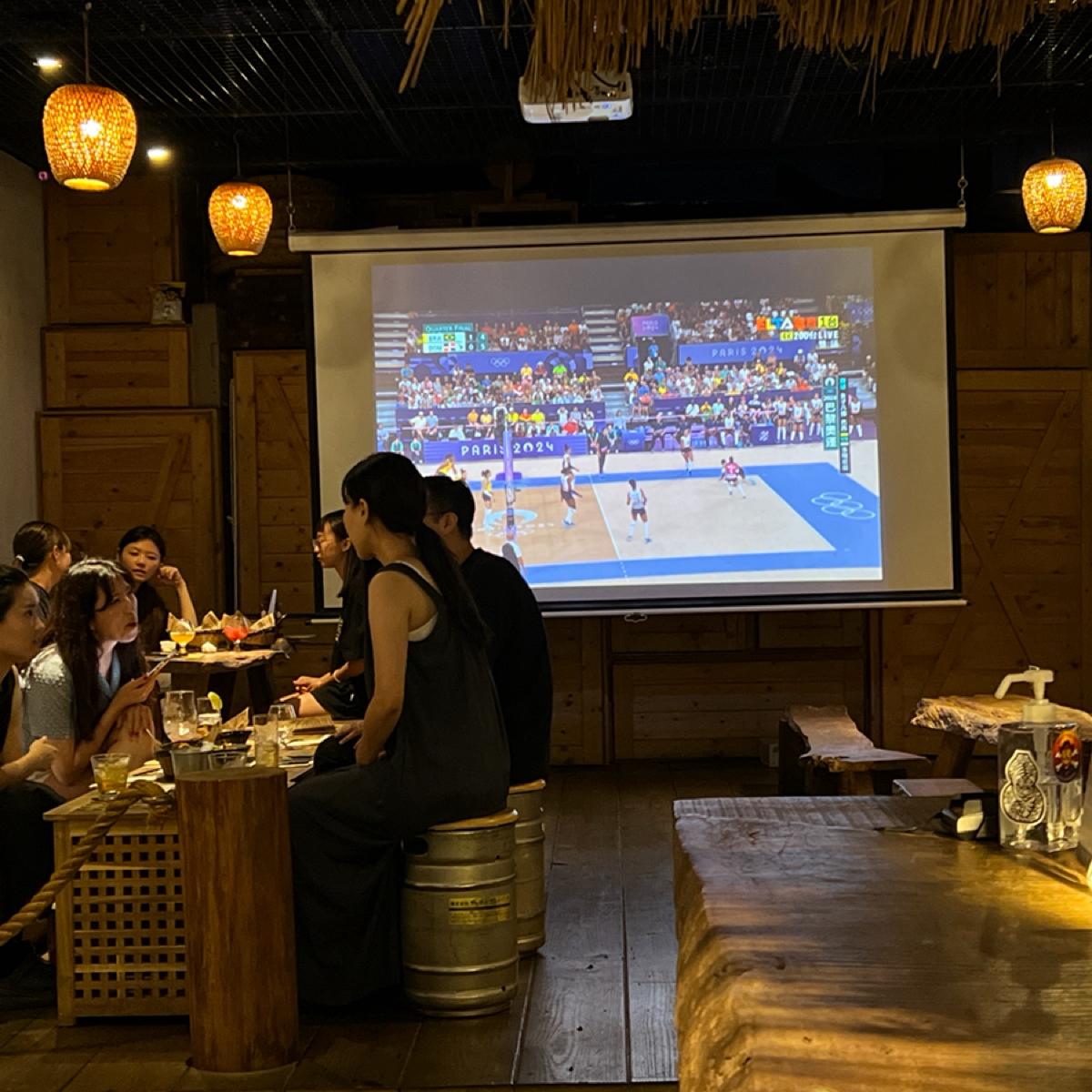There is a projector playing sports events in the store, and because the store is large, the noise from other tables has less impact.