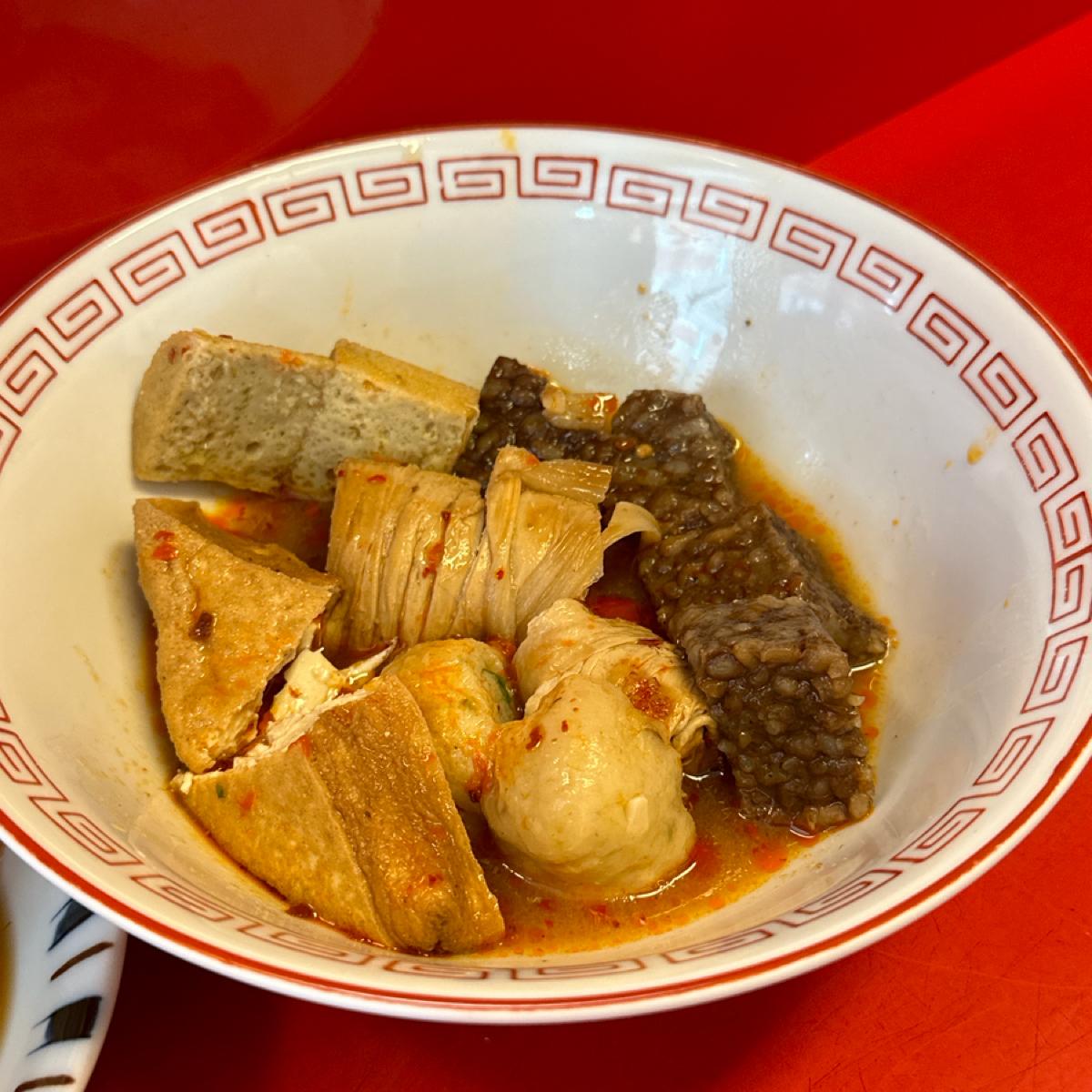Oden is spicy. I was originally worried that it would be too spicy, but it turned out okay. In summary, the contents of oden include fried tofu, stuffed vegetarian balls, rolled tofu and konjac. Those who like spicy food find it richer and more flavorful. I am not sure if it is vegetarian. The taste itself is light, and the rolled tofu is so good that I feel like I can order extra.
