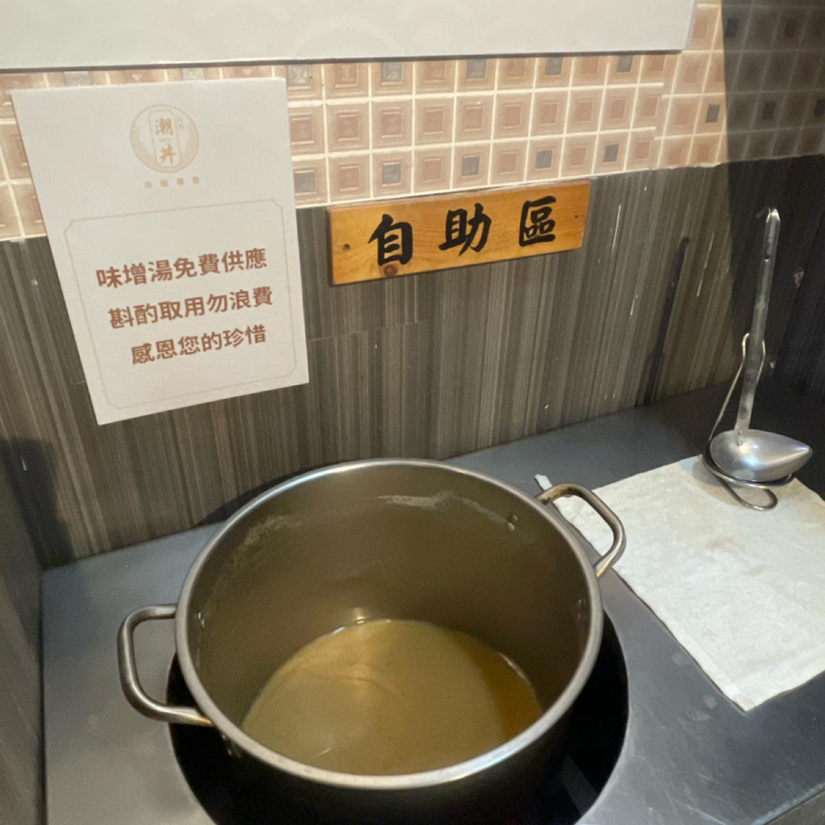 There is free miso soup for you to drink inside. Miso soup is pure soup with almost no ingredients. You can only eat very finely chopped tofu. It tastes ordinary and salty.