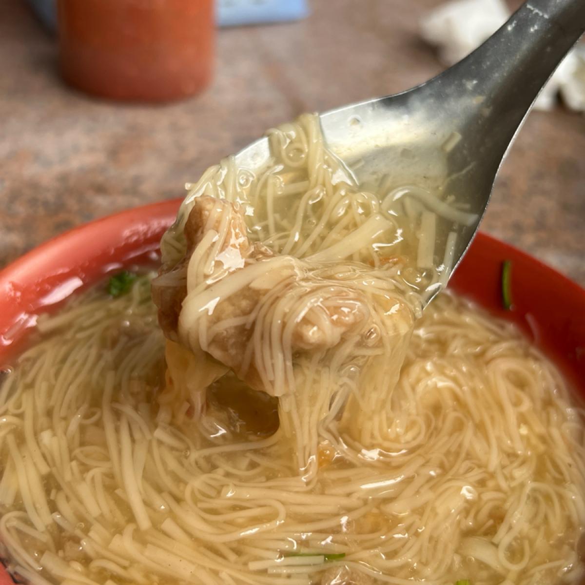 One of the specialty snacks in Lukang Market is a rare low-cost delicacy. A bowl of noodle soup costs NT$35. The wait time for dining in or takeout isn’t too long. It includes cilantro, meat paste, and noodles. There aren't many ingredients, but it will make you keep wanting more. The biggest downside is that in this hot weather, there’s no air conditioning, only a fan.