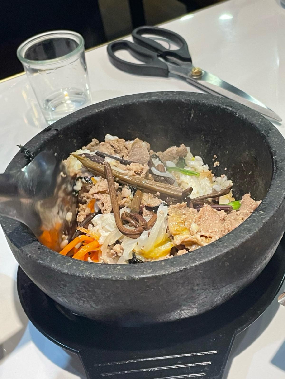 This dish did not come with the bibimbap hot sauce, which you need to request separately from the staff. I'm not sure if it was because I mixed it too quickly, but I didn’t get much crispy rice, and it tasted quite average; it's optional to order.