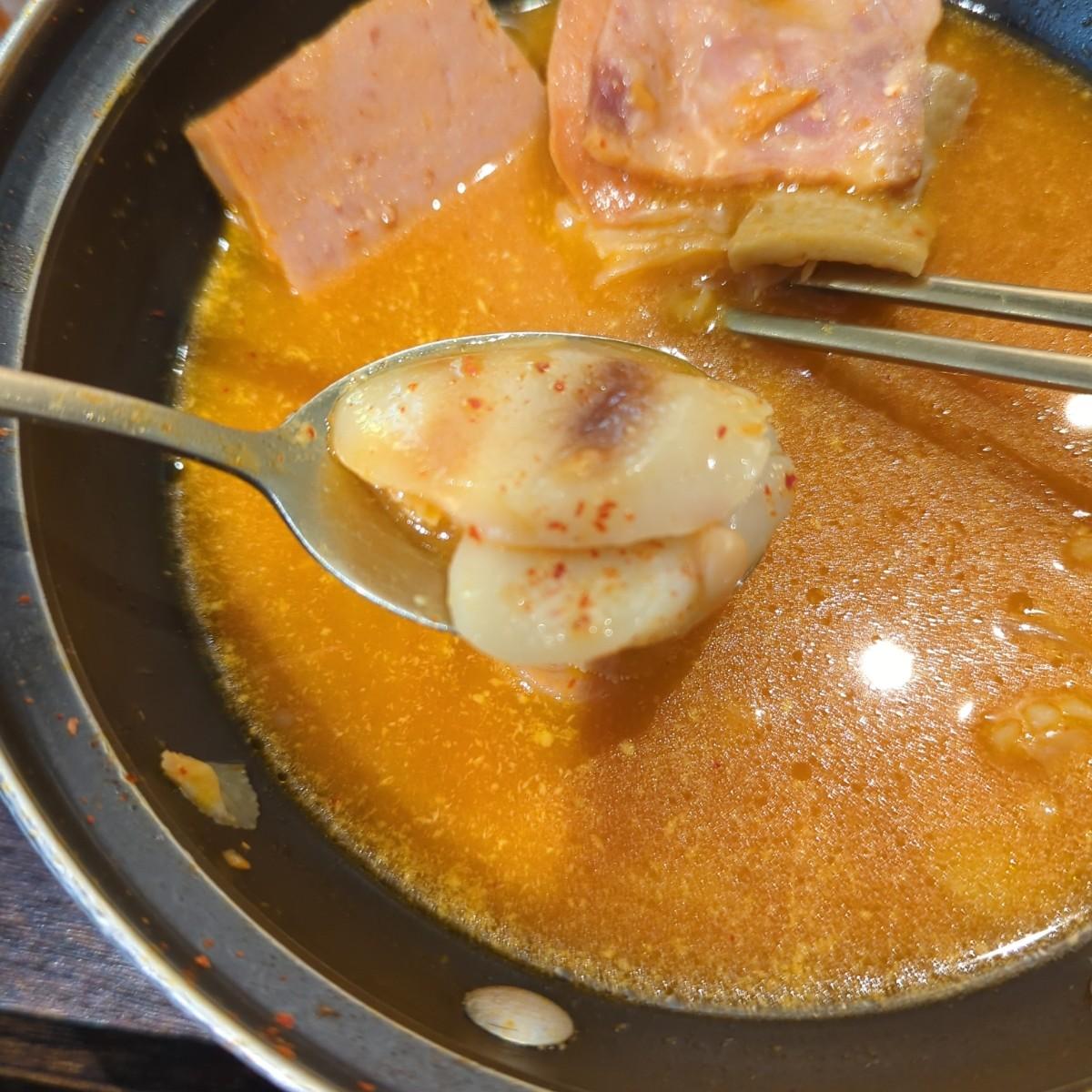 In the military pot, his ramen is only a small package, which may not be enough if you only eat noodles, but fortunately, he comes with a bowl of white rice so that you can eat full😌The ingredients in the pot include cheese, a little onion, cabbage, and hot dogs , luncheon meat, ham, rice cakes, those processed foods taste so delicious, so I won’t say more 😂 The soup is sour and feels like it was cooked with kimchi juice. There is no sweetness and not too much spiciness. Taste, it goes well together!