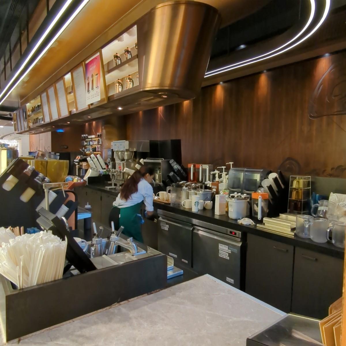 💬 I originally thought it would be cooler in Hong Kong at night, but it turned out to be just as hot as during the day. I had to go to Starbucks and order a Frappuccino to try it out. I didn’t expect this Starbucks to offer alcoholic beverages as well. Although it closes at 9 PM, having alcoholic drinks makes a big difference... Truly deserving of being the most prosperous international financial center mall. If you’re tired from walking, I highly recommend taking a seat here; you can rest at Starbucks without needing to buy a drink.