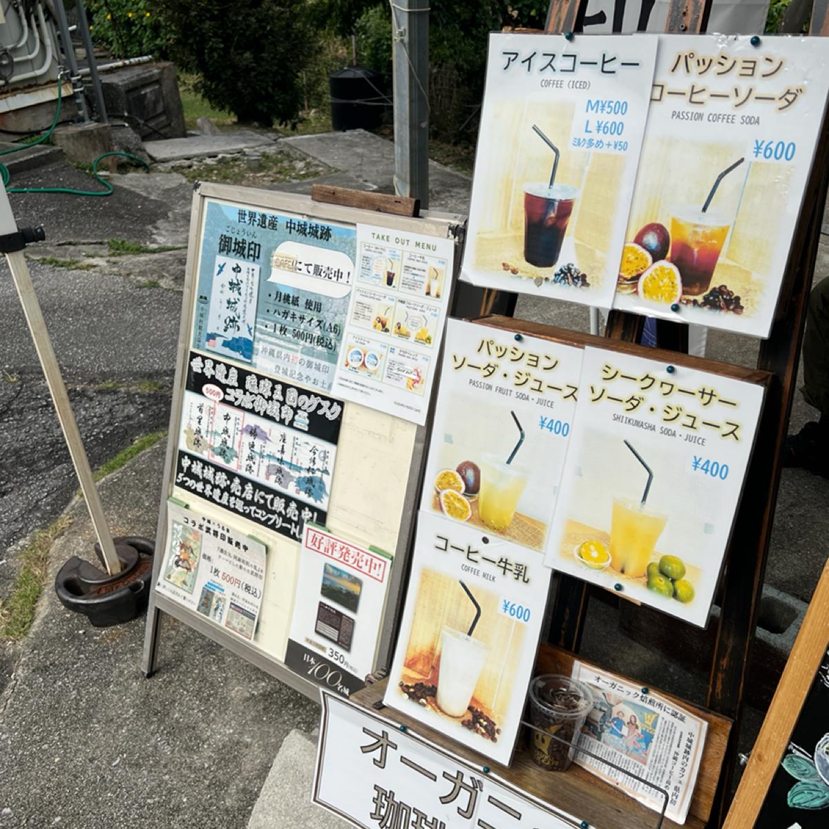 This is the GUSUKU ROCK CAFE in Okinawa. During my trip to Okinawa, I arranged a visit to historical sites, with the goal of exploring the UNESCO World Heritage Nakagusuku Castle Ruins. After touring the ruins, I found this café at the entrance, so I decided to go in and take a break. I ordered an Americano with milk, which cost 500 yen. The taste was average, just a typical Americano.