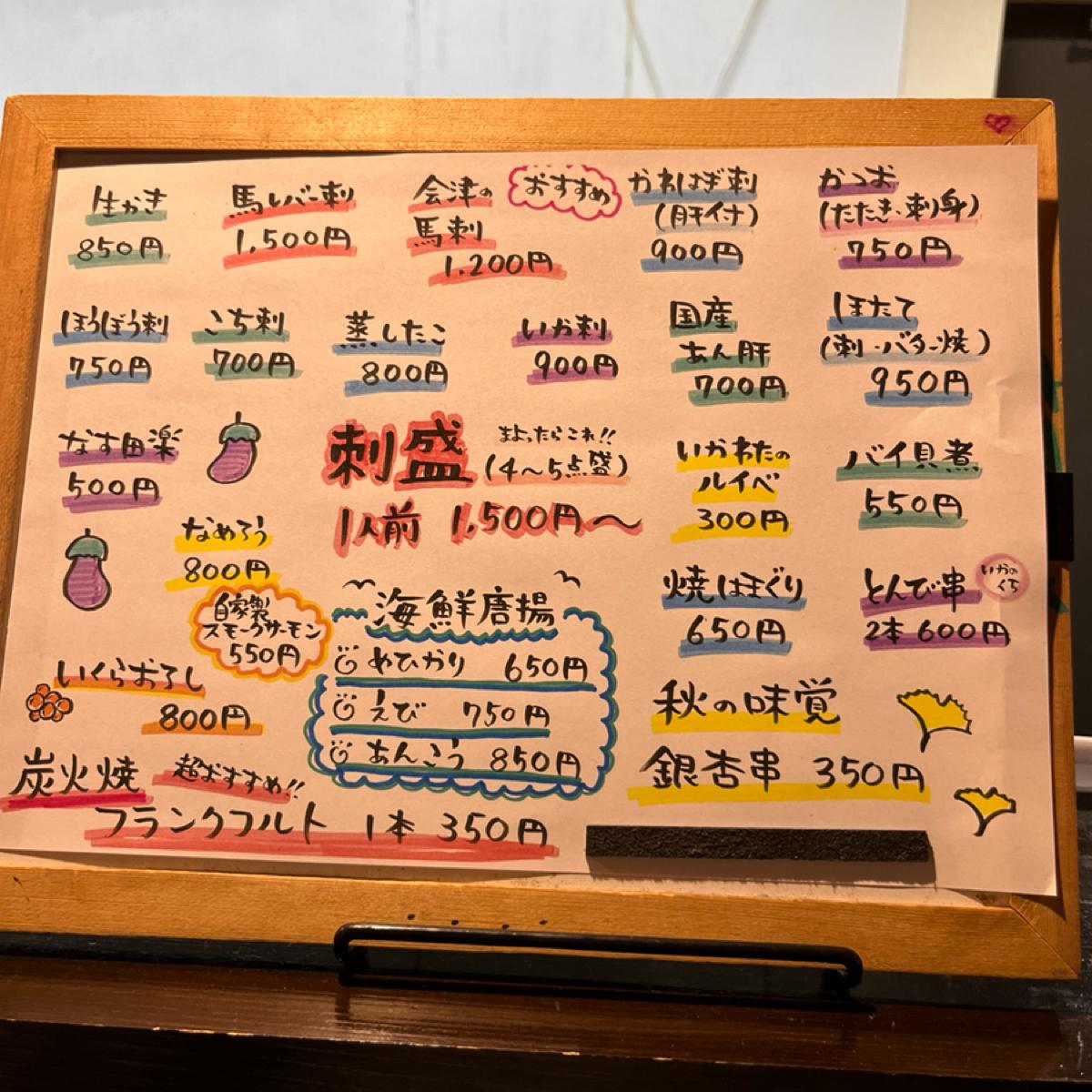 When I arrived in Aizuwakamatsu, I wanted to find an izakaya to eat at. After searching for a long time, there really weren't many restaurants in this rural area, so I picked this one that looked good to eat and drink.