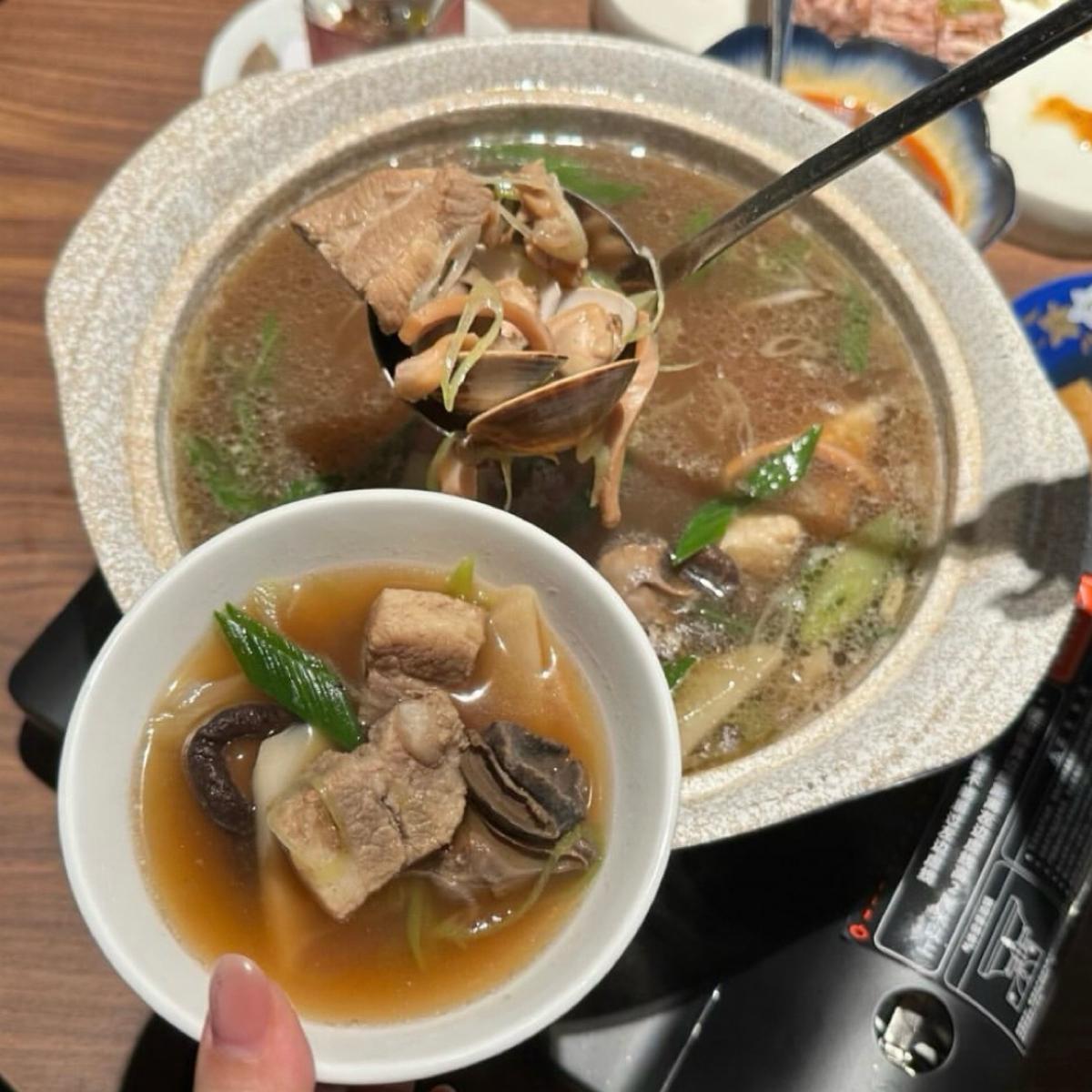 The soup is sweet and contains squid, snail meat, clams and bamboo shoots.