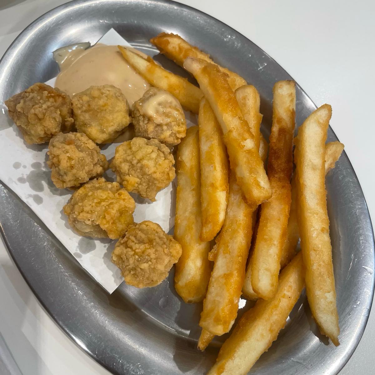 It comes with chicken balls and fries. I feel the sauce has a bit of a fermented tofu taste that doesn't really match, haha. The chicken balls are quite ordinary while the fries are pretty good, and the combo is optional to include.