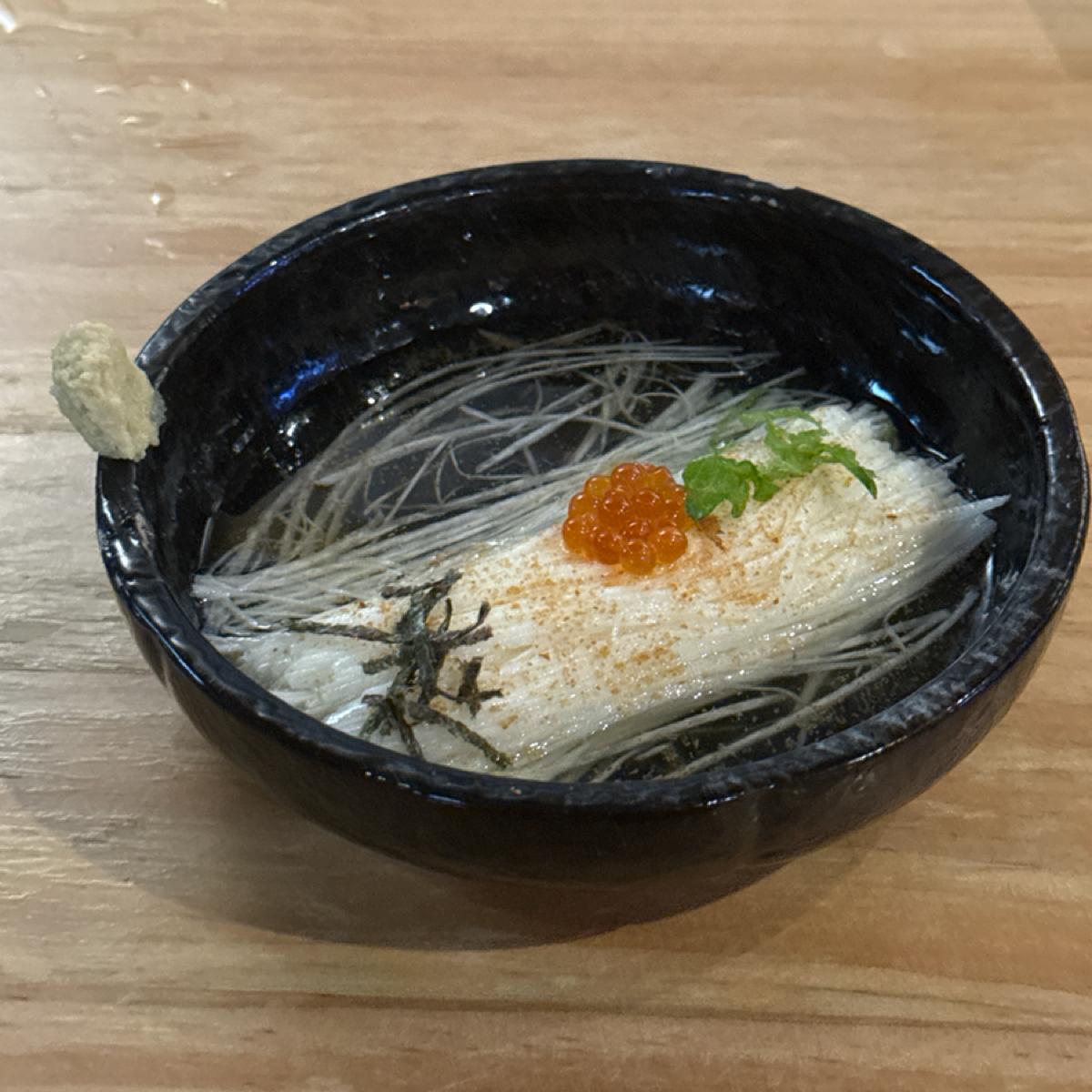 The delicate knife skills shredded the yam into fine strips, which paired well with salmon roe and simple seasoning, creating a smooth and refreshing texture. It’s visually appealing and tasty, one of the few cold dishes I would want to order again.