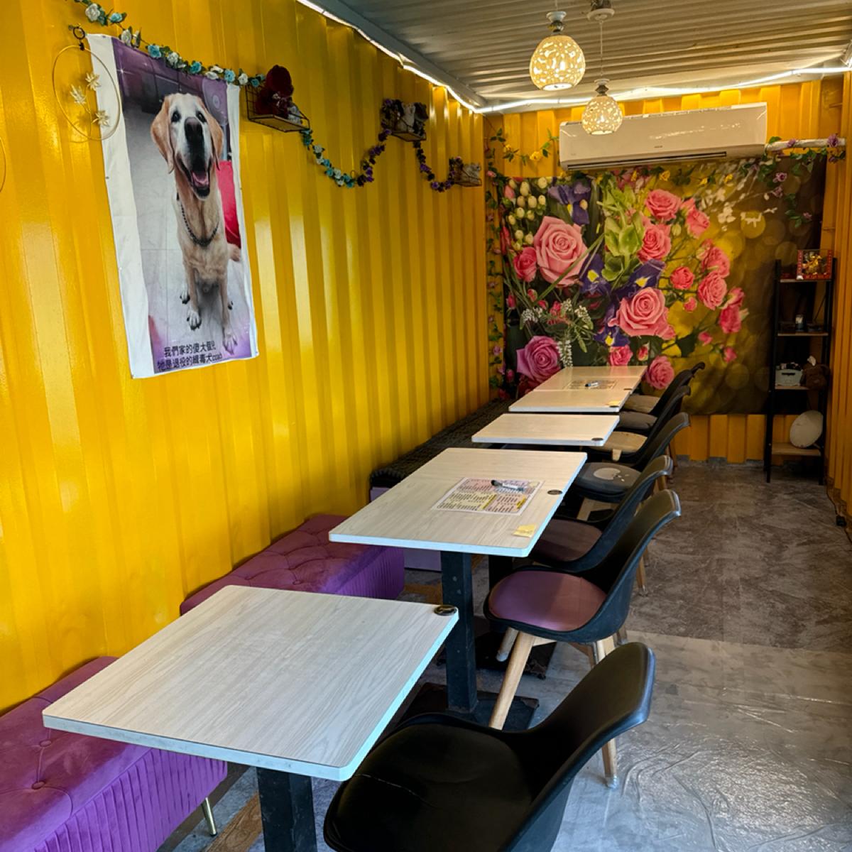 Pingtung Pet-Themed Restaurant - Violet Pet Leisure Cafe, originally located on Ziyou Road, recently moved to Gongyu Street. The new location has a very large area with a super large meadow for dogs to run. However, there are currently no facilities, and the dining area is inside a shipping container. Dining in has air conditioning, but there are very few seats, and it is relatively cramped. Another container also has seats, with many cats to accompany diners.