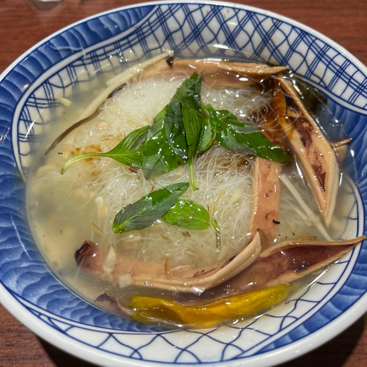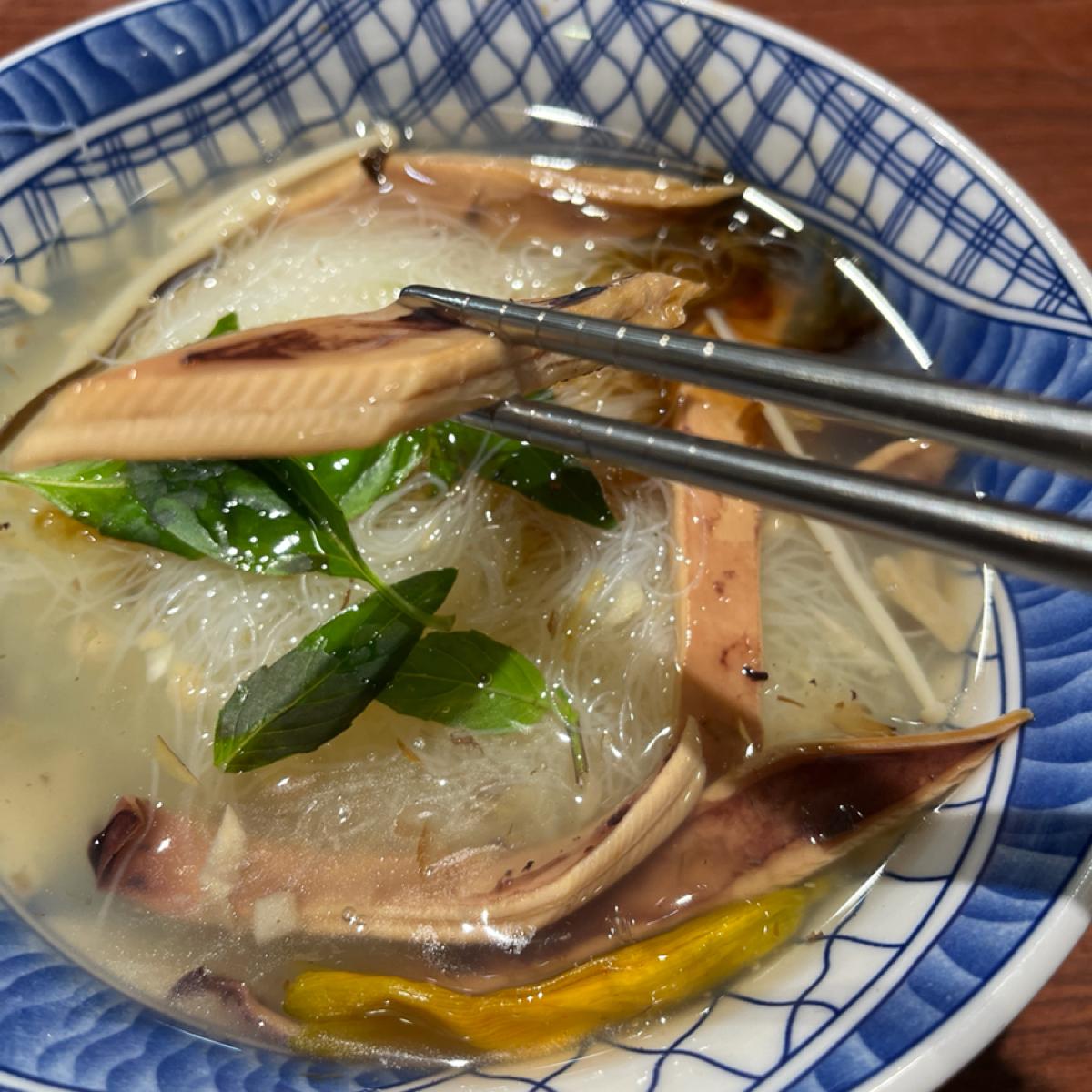 I ordered the sliced squid soup with rice noodles for $85. Their noodles don’t come in different sizes; there’s only one size. If you only eat one bowl of rice noodles, it might not be quite enough, so you may need to order other dishes. The squid soup broth is decent, and the rice noodles are flavorful; overall, it's pretty good.