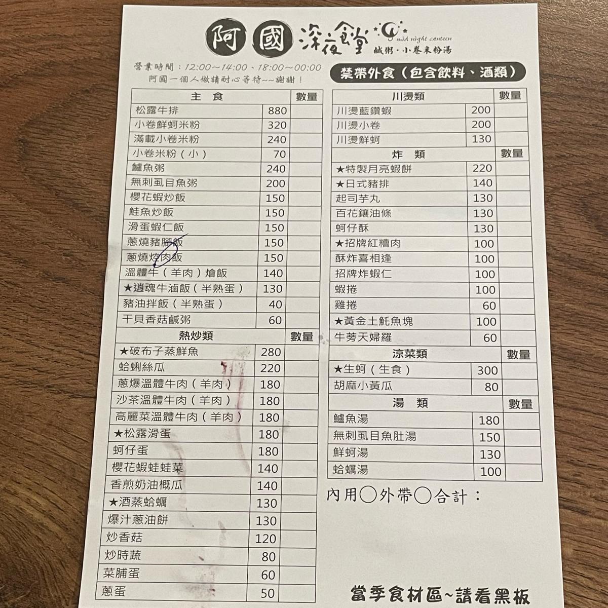 "Ah Guo Late Night Diner" seems to focus on savory porridge and rice vermicelli soup with squid (as these dishes are highlighted on the menu), but we didn’t order either, haha.