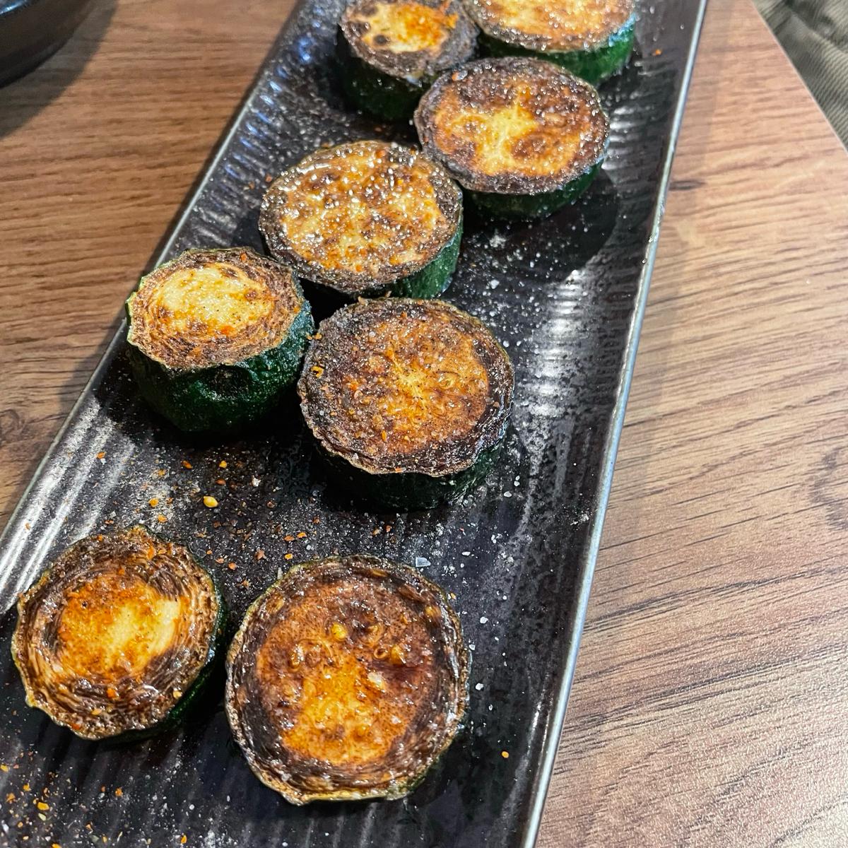 It looked great, resembling something you'd get at a skewered meat shop. However, the first piece I tried was a bit bitter, while the others were fine. The zucchini was very juicy, and although it’s described as buttered, it didn’t taste too greasy. I would consider ordering this again.