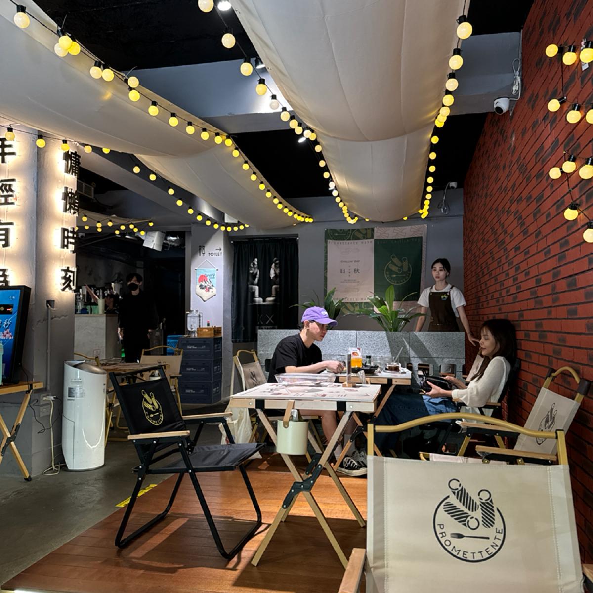 The shop has clearly put a lot of effort into the appearance and interior decor, creating a camping atmosphere, although I personally find the camping chairs a bit inconvenient for face-to-face chatting.
