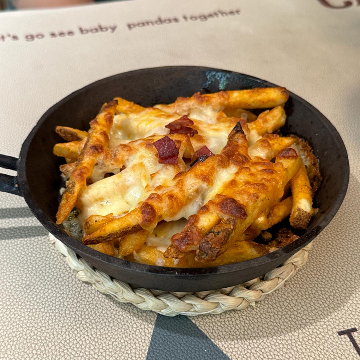 Freshly fried fries with the skin on, topped with melted cheese and crumbled bacon—so indulgent! It's best to share, or it can get overwhelming by the end.