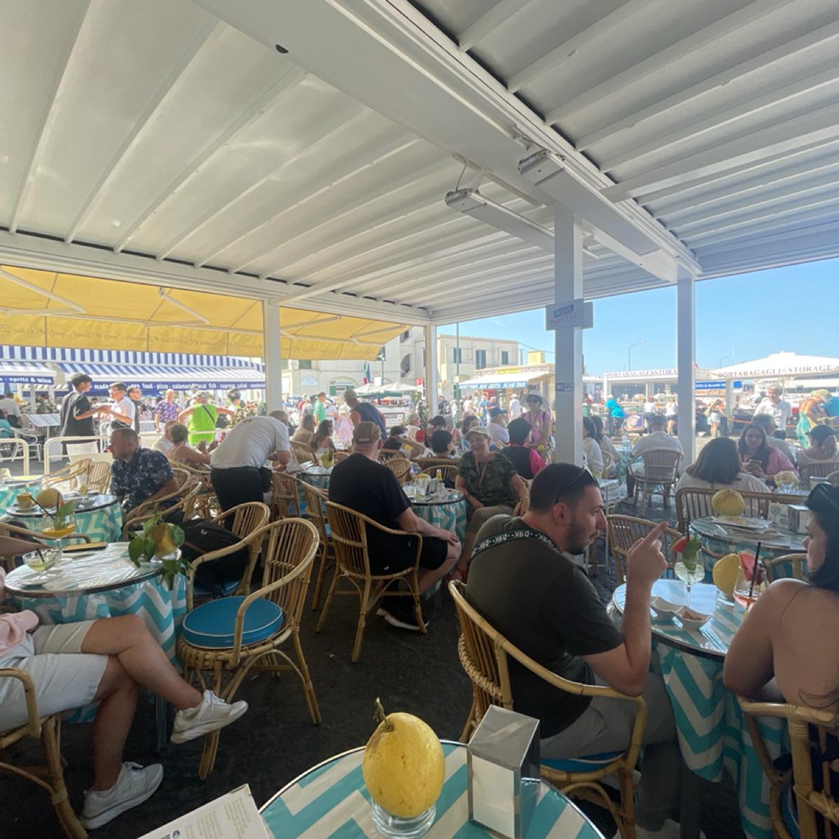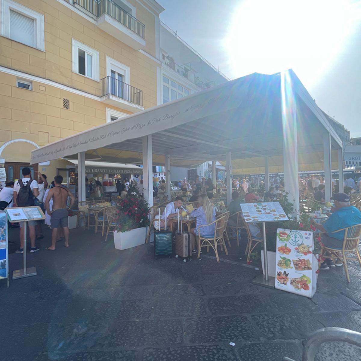 You have to take a boat from Surendo or Naples to Capri Island. There are many restaurants next to the pier of Capri Island. Because they face the pier, many tourists will order a glass of wine or coffee here. Chat or just relax