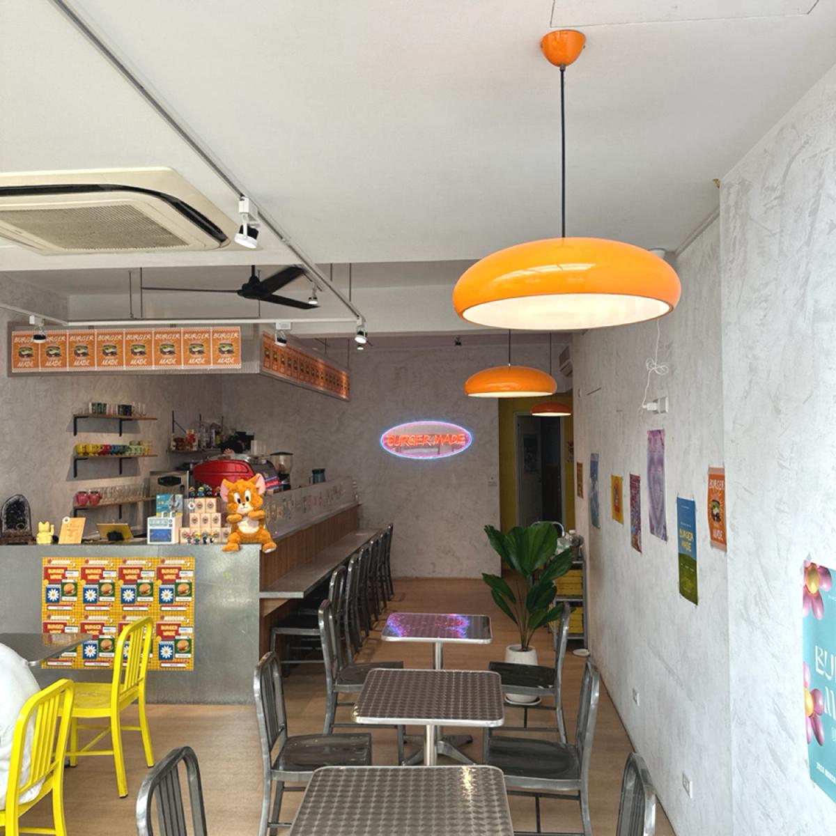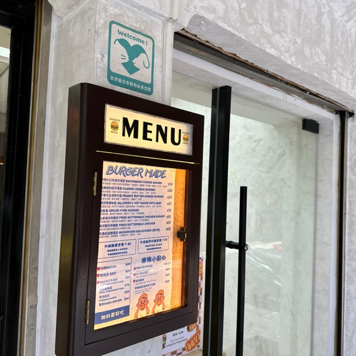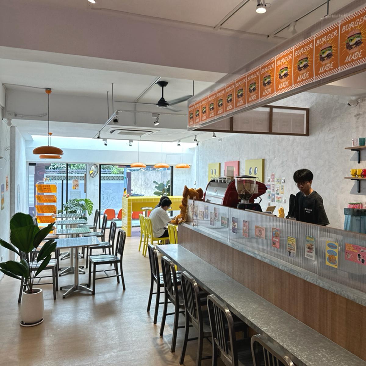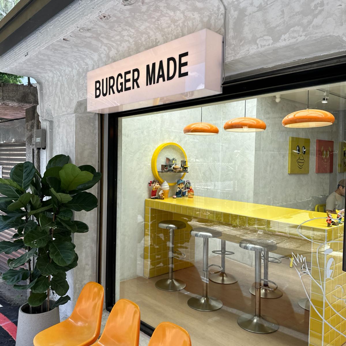 Located in the alley between #SongjiangNanjing MRT Station and #NanjingFuxing MRT Station, BURGER MADE presents a very eye-catching American cartoon minimalist atmosphere right from the entrance. If I had to describe this place in three adjectives, they would be "minimalist," "bright," and "cartoonish."