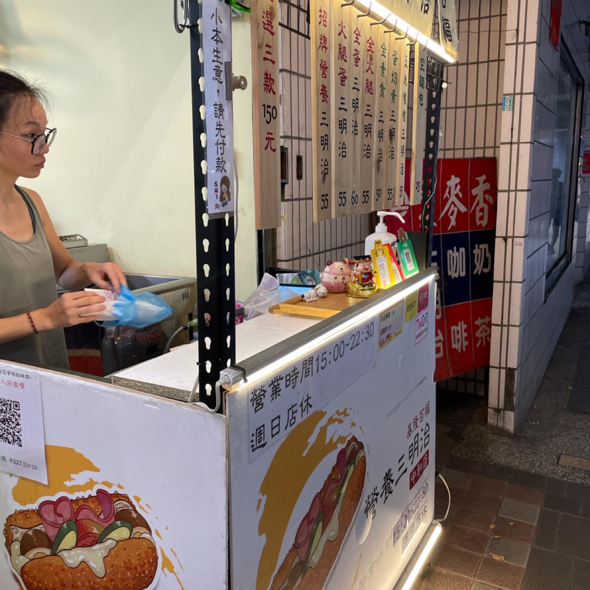 Located in the arcade opposite the Jing'an MRT exit, this location seems to be a breakfast shop during the day, and turns into a nutritious sandwich vendor in the evening.