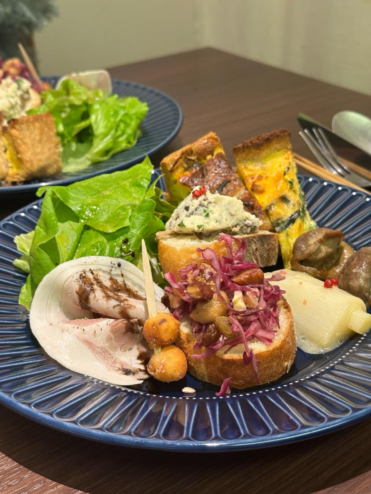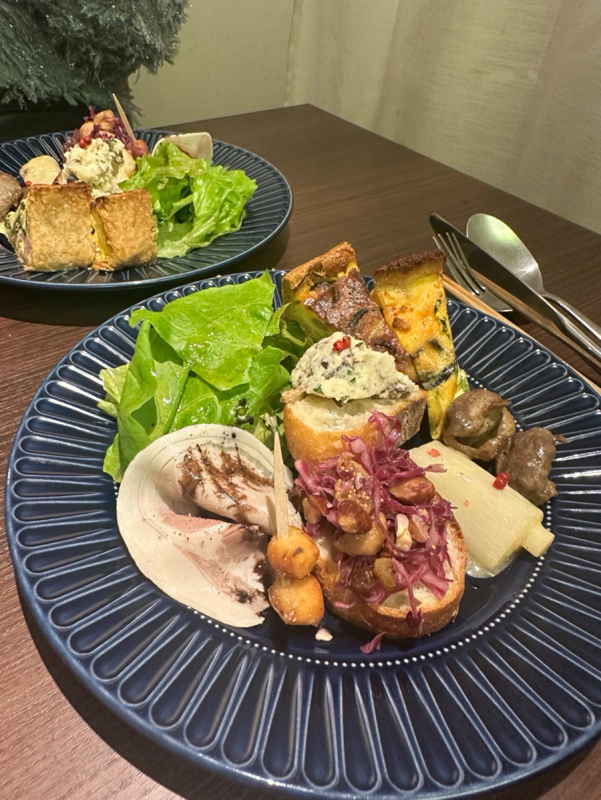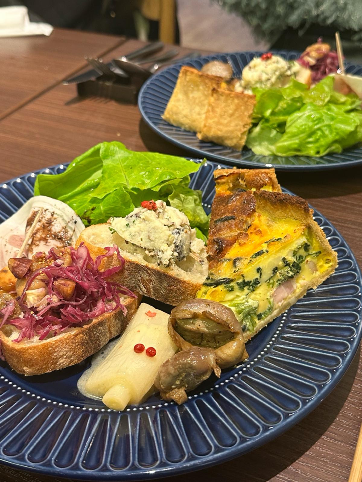 This time, I had a plate with an appetizer and quiche along with some soup! Initially, the quiche I ordered was a bacon and spinach quiche, but since there was only one left, I was able to split the next batch of mushroom and mozzarella quiche with my friend, allowing us to enjoy two different types!