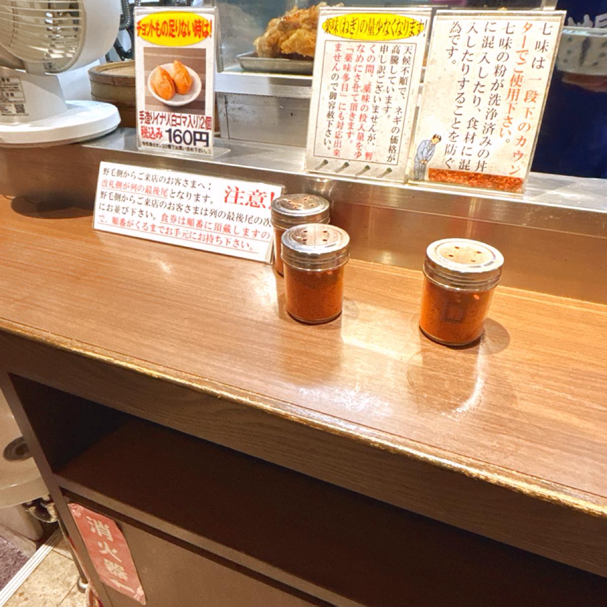 Founded in 1900, it has always been a standing noodle shop. Currently, there is a row of small low tables inside, but there are also a few tables outside where you can stand and eat.
