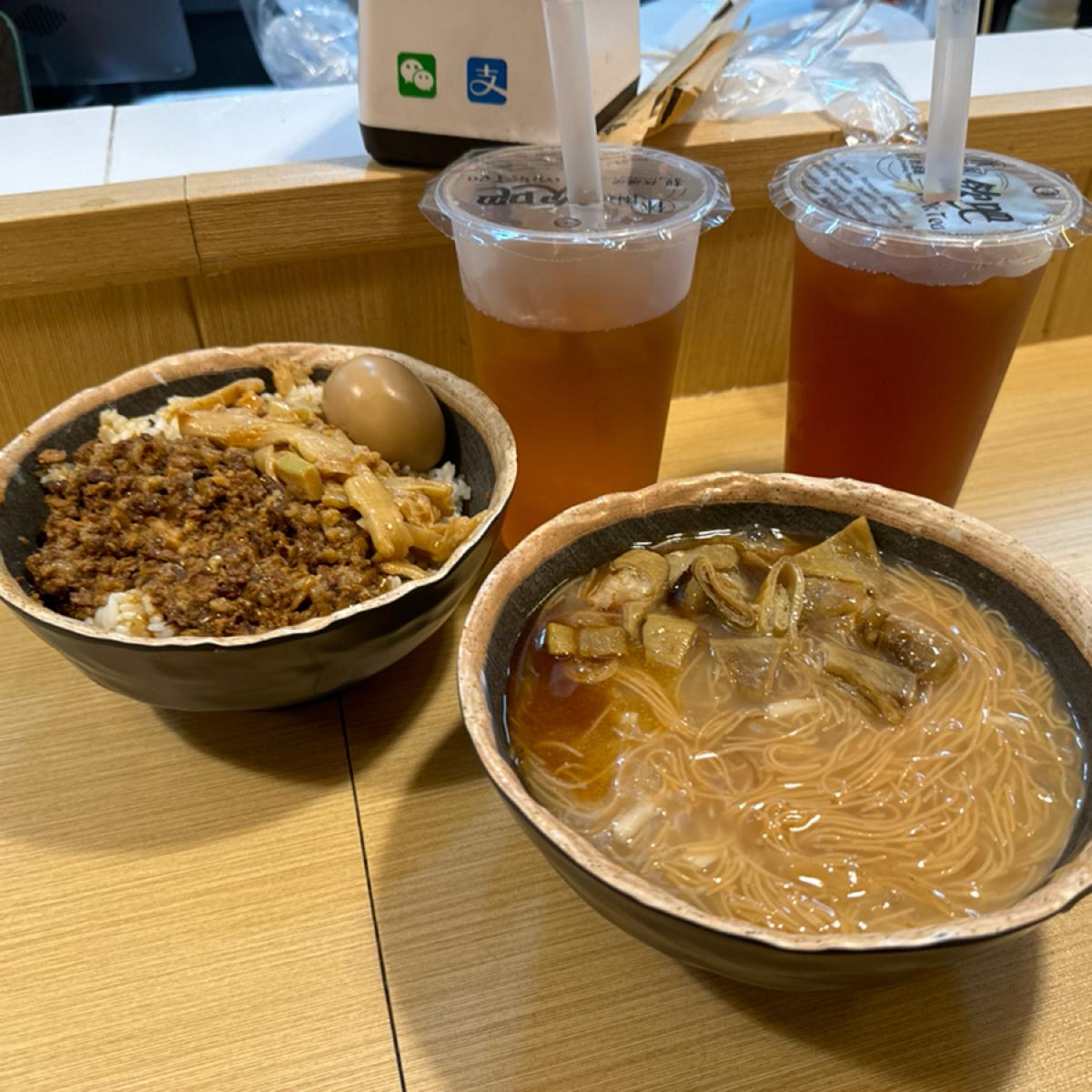 The crispy salted chicken and sweet and spicy chicken are delicious, and the braised pork rice is also very authentic. I may not be used to eating noodle paste, so I won’t comment~ Both winter melon tea and black tea are too sweet LOL