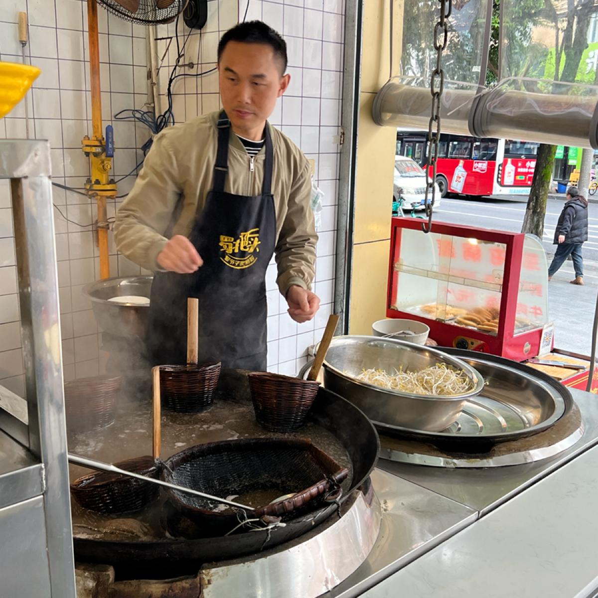 The texture of the powder is somewhat similar to that of mung bean noodles. I don't know if they have similar ingredients, but it absorbs the broth well, whether it's spicy or not, it's quite flavorful. The "fat intestines" should refer to small intestines. "Fat intestine powder" is just noodles with small intestine broth, but the intestines are cut into small pieces. I really liked the knots; I've never seen them before. They should be knotted small intestines... but when you bite into them, they burst with juices, so you have to be careful. They're very unique and can also be called "urinating intestines"??? I ordered them separately and enjoyed having three of them.