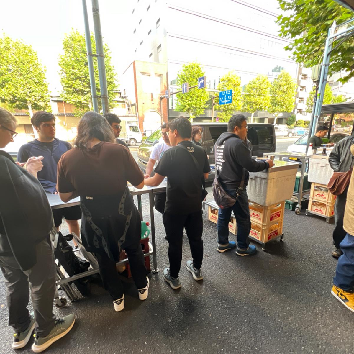 Located next to the Tsukiji Outer Market on a main road, the street-side shop has a simple environment. There are about three seats at the counter, and the rest are standing to eat. The business is very good, with both Japanese and foreign customers, and there's usually a line, but the food is served quickly. The menu options are simple and clear, and you eat and go.