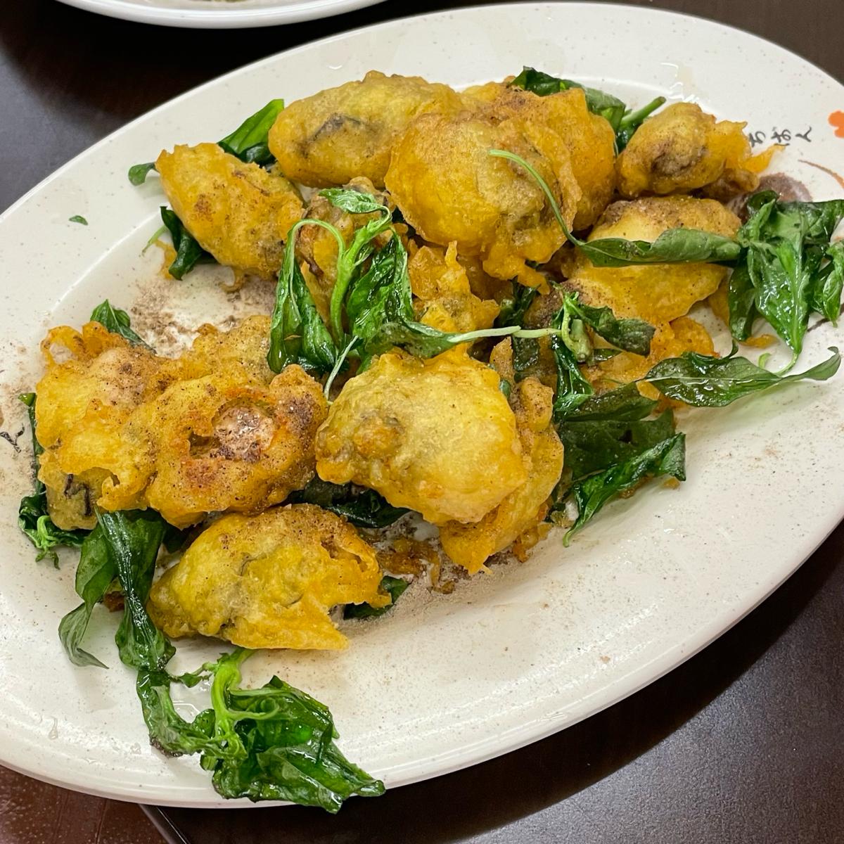The appearance is different from the usual oyster fritters; they are much larger. The outer layer is fried really crispy, and the oysters are indeed quite big. However, I'm not sure if too much pepper salt was sprinkled on it, as it was quite salty and needed rice to eat.