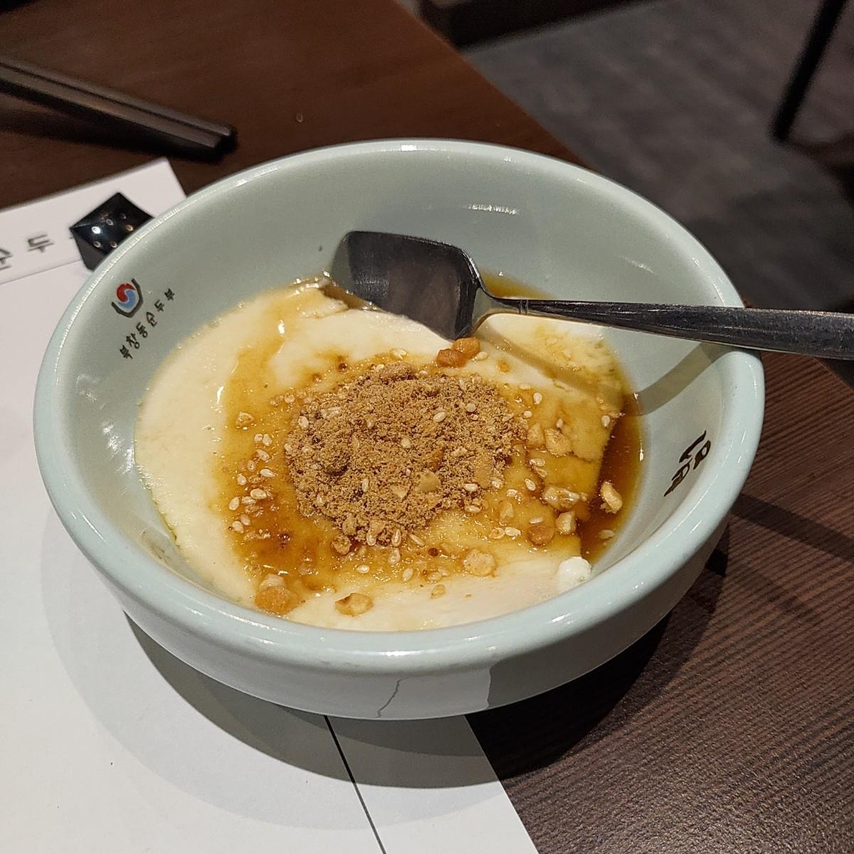 The small portion of bean curd is sprinkled with peanut powder, which is not too sweet and is a good combination.