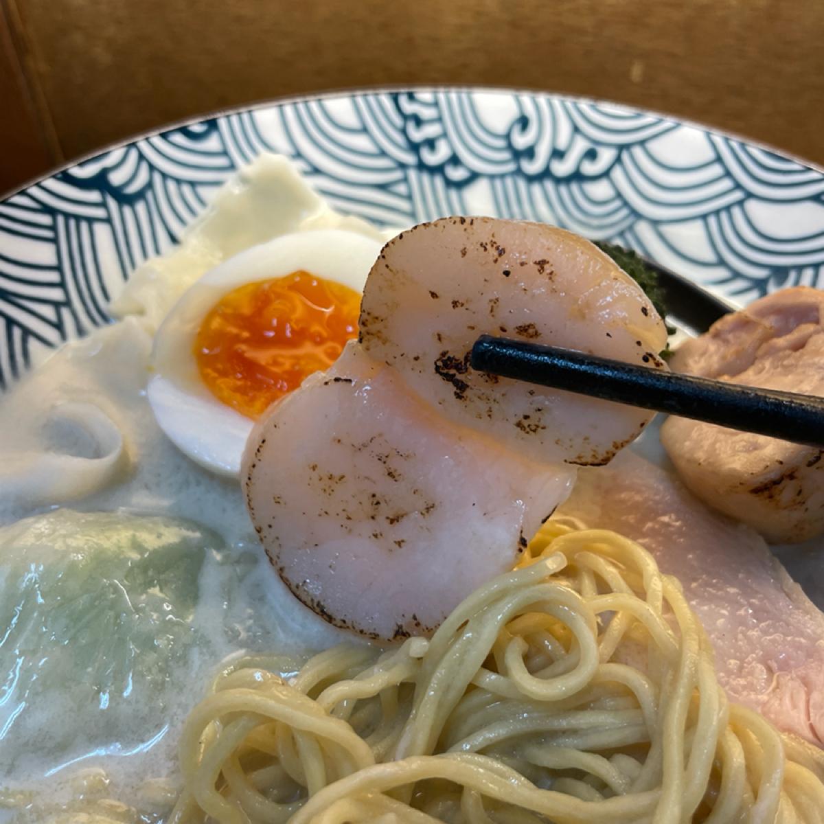 Double scallop soup ramen: The soup is made with one scallop and chicken. It tastes very rich and not greasy. The dough is thin and soft but slightly hard, the grilled chicken and scallops are very delicious, the soft-boiled eggs are specially seasoned, and the wonton garnish at the end is also great!
