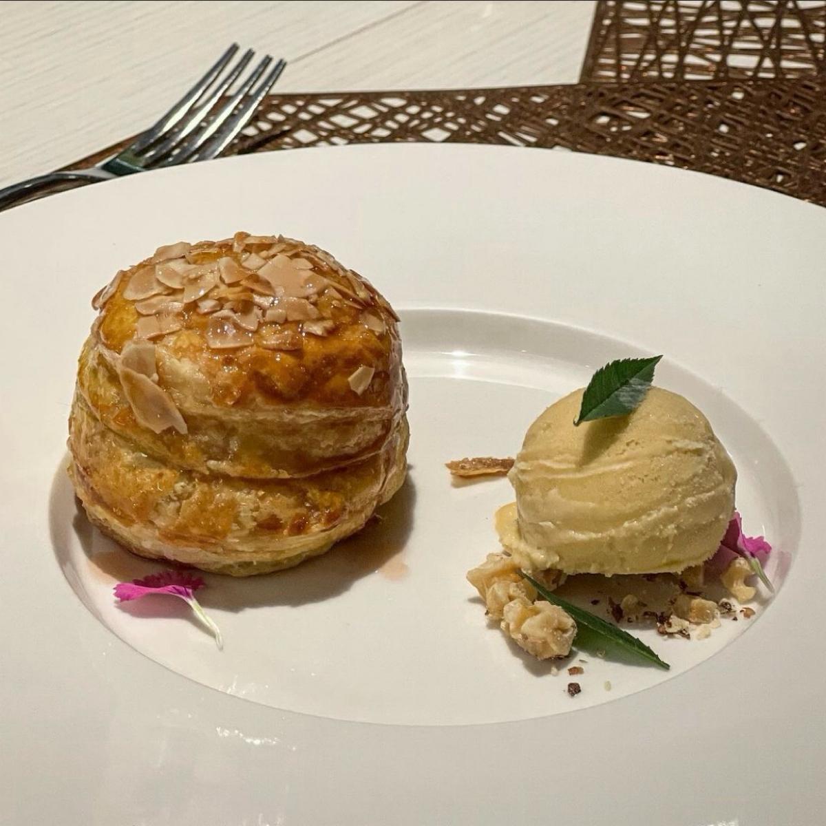 ▫️Dessert: Almond and Date Puff Pastry Dumplings & Ginger Vanilla Ice Cream