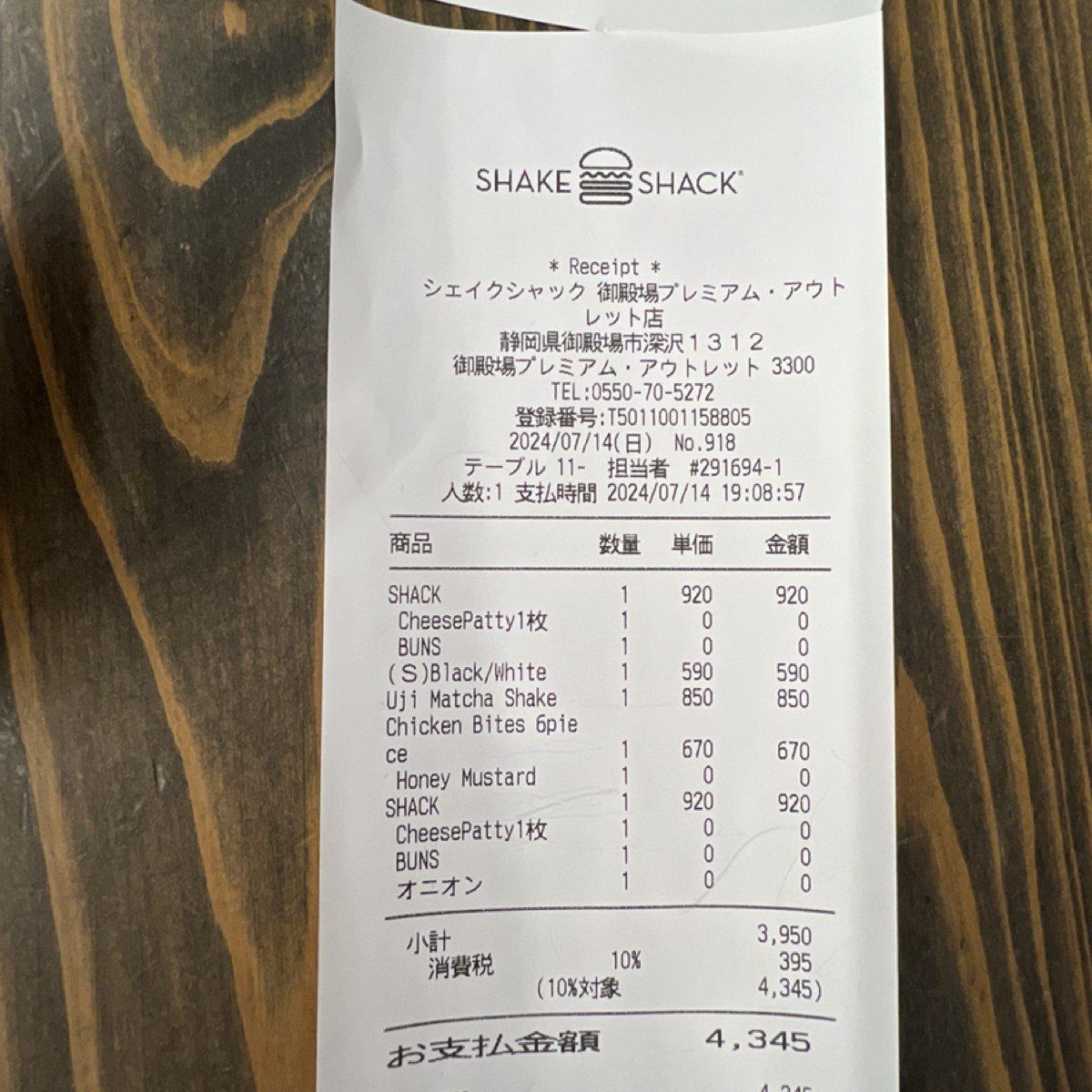 Shake Shake is a well-known American burger chain. This Shake Shake is located in Gotemba. It is a relatively cheap food in this outlet, but the price is still on the high side.