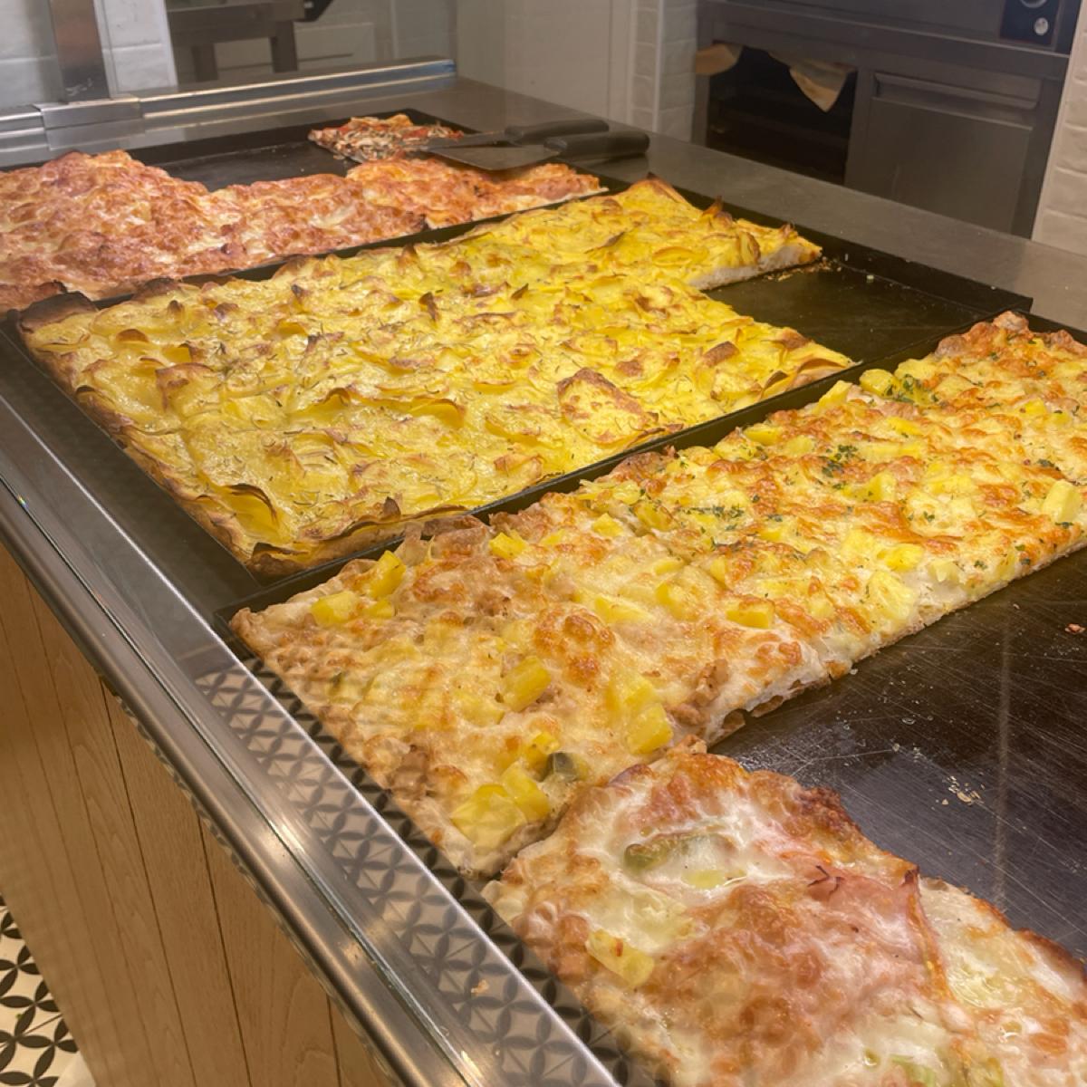 Alice Pizza's pizzas are priced by weight, so you can choose the size of pizza you want.