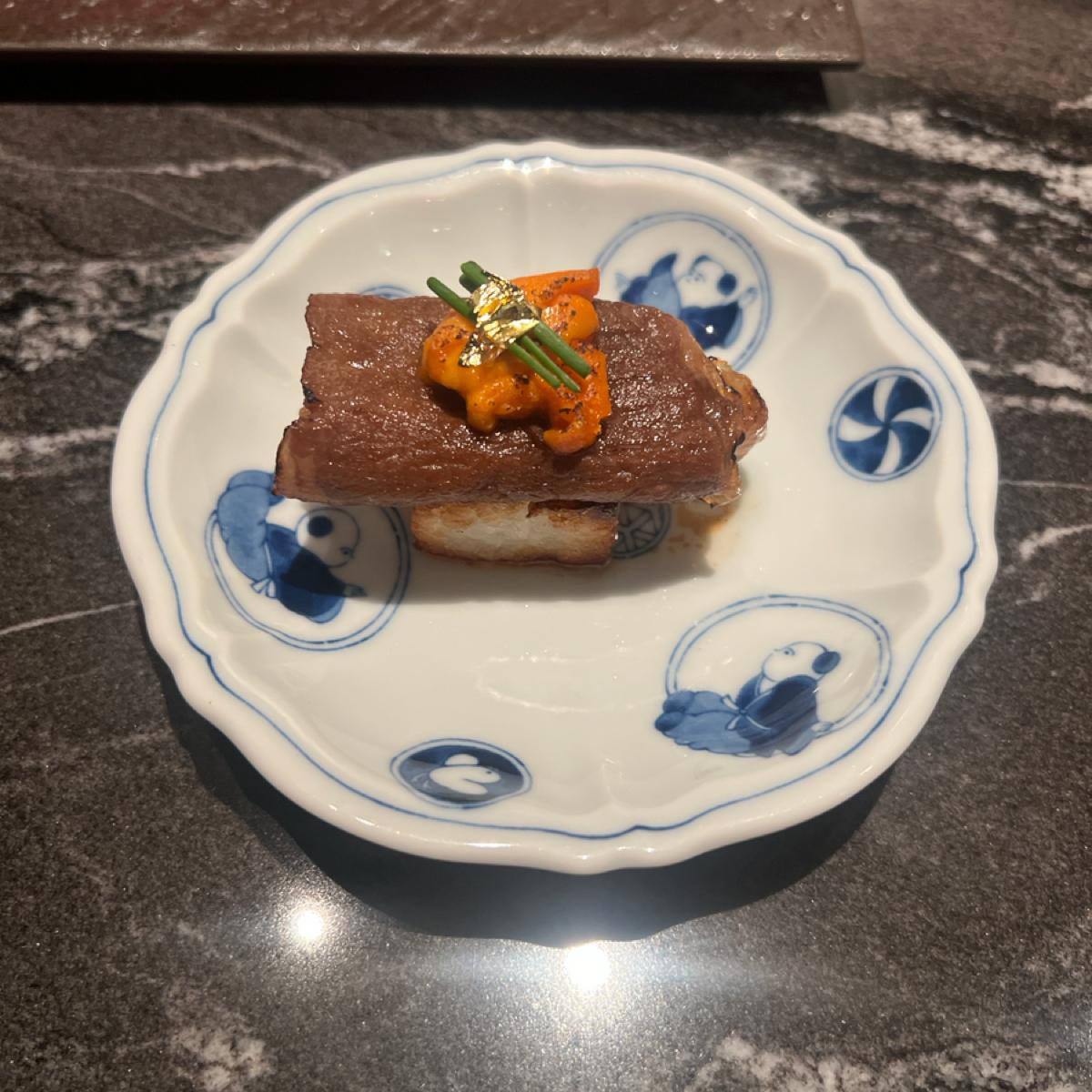 It's recommended to eat the Kobe Wagyu sushi while it’s hot,