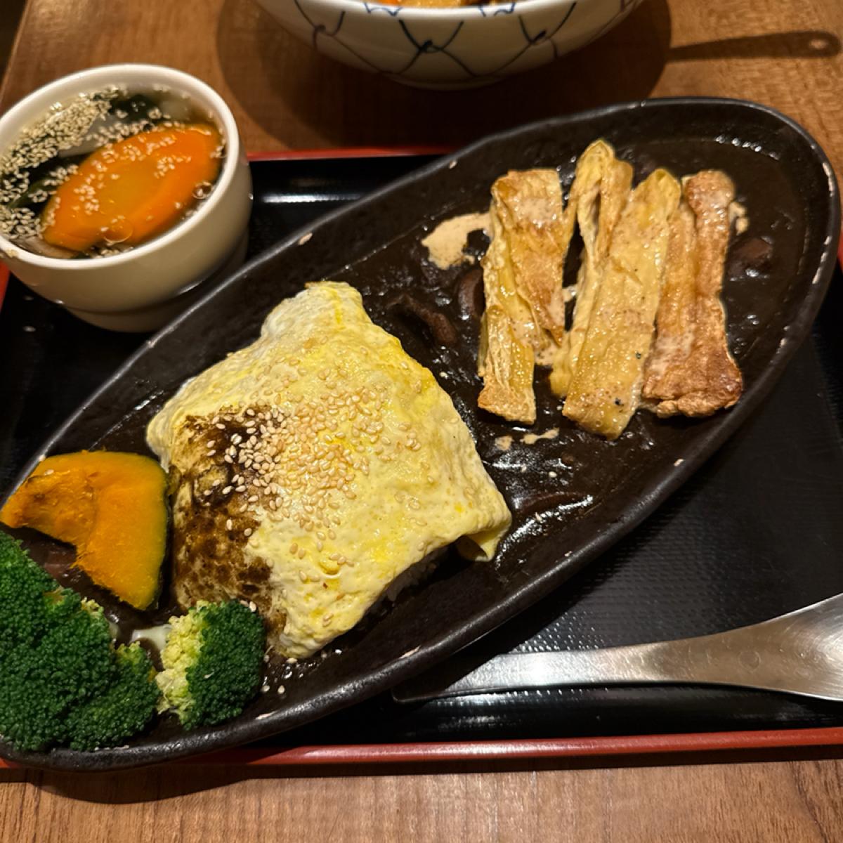 In terms of the dishes, the curry omelet rice was the most impressive. The curry adopts a black curry style, with a rich flavor that isn’t overly heavy, and the spices have distinct layers. The omelet is smooth and has a very soft texture when mixed with the curry. The radish in the ingredients is stewed to perfection, almost melting in your mouth; after soaking up the curry and broth, it releases both sweetness and aroma, becoming a small highlight of the dish.
