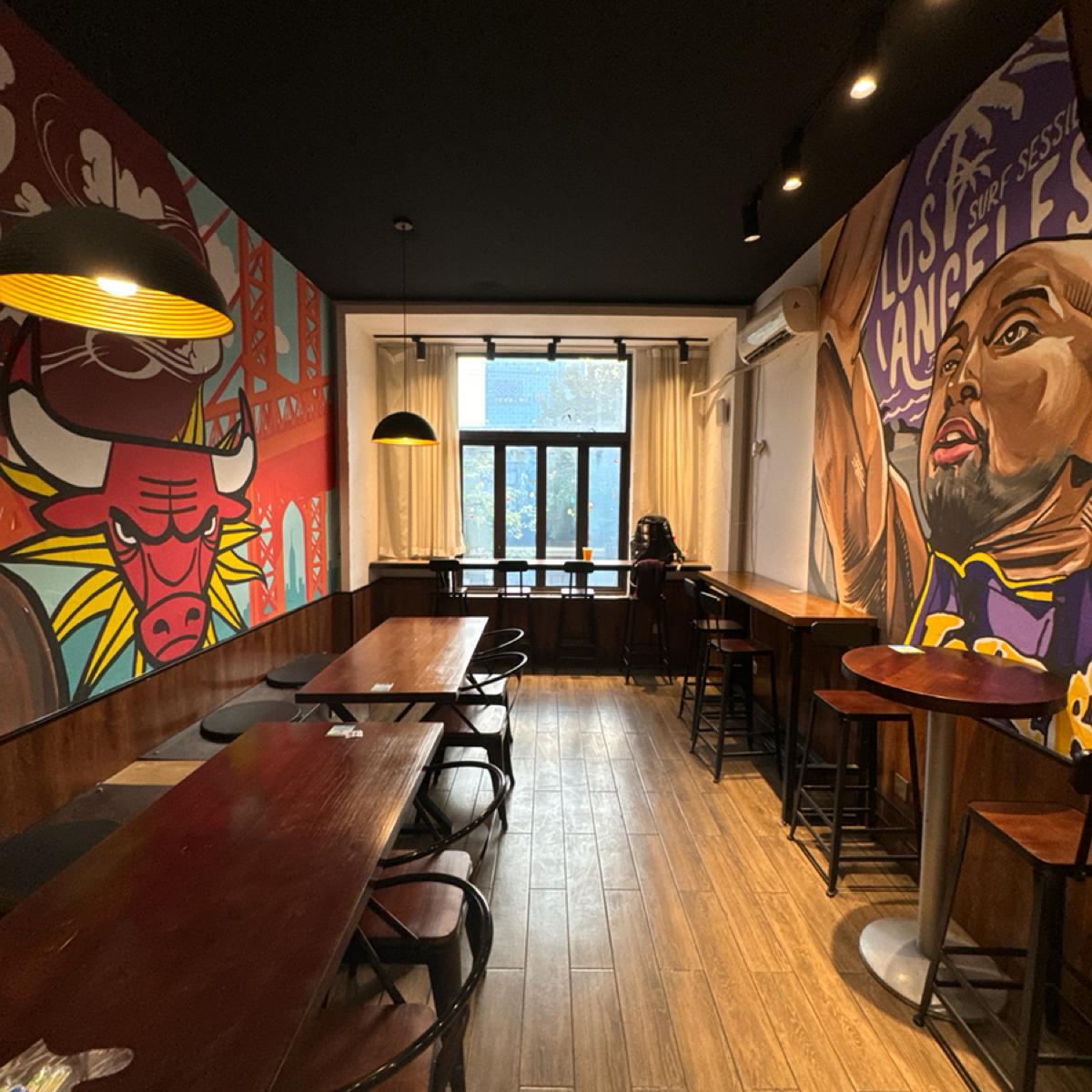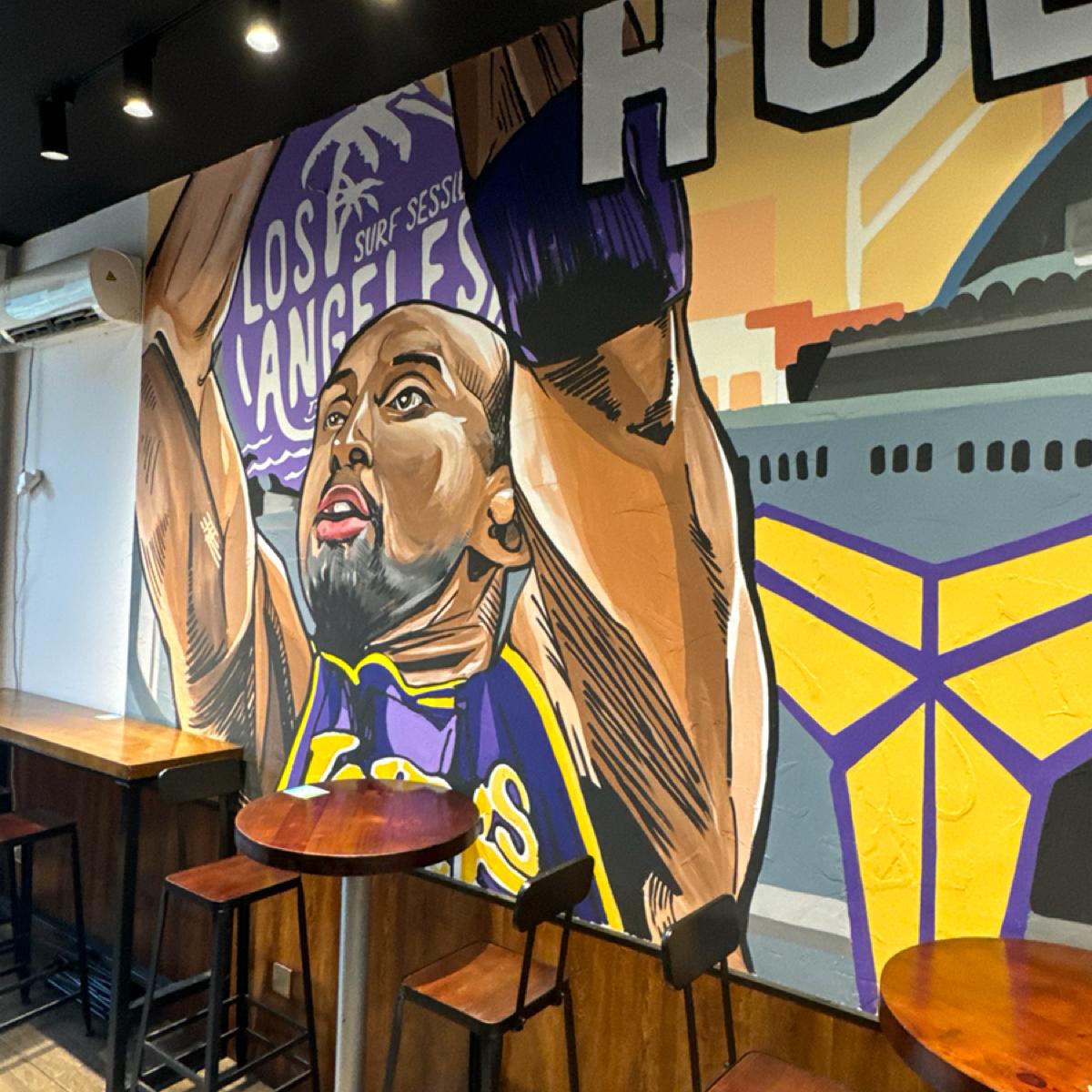 The second floor is also a dining area, and there is a big LeBron James mural on the wall. Friends who like the NBA should come check it out!