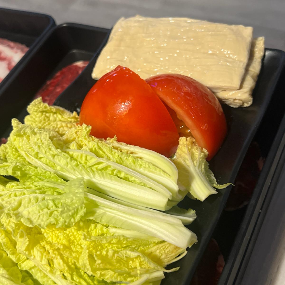 As for the vegetables, they were average. There were some I liked, such as beef tomatoes and wet tofu skin. The beef tendon in the braised trio was tender and flavorful, which went well with the spicy hot pot.