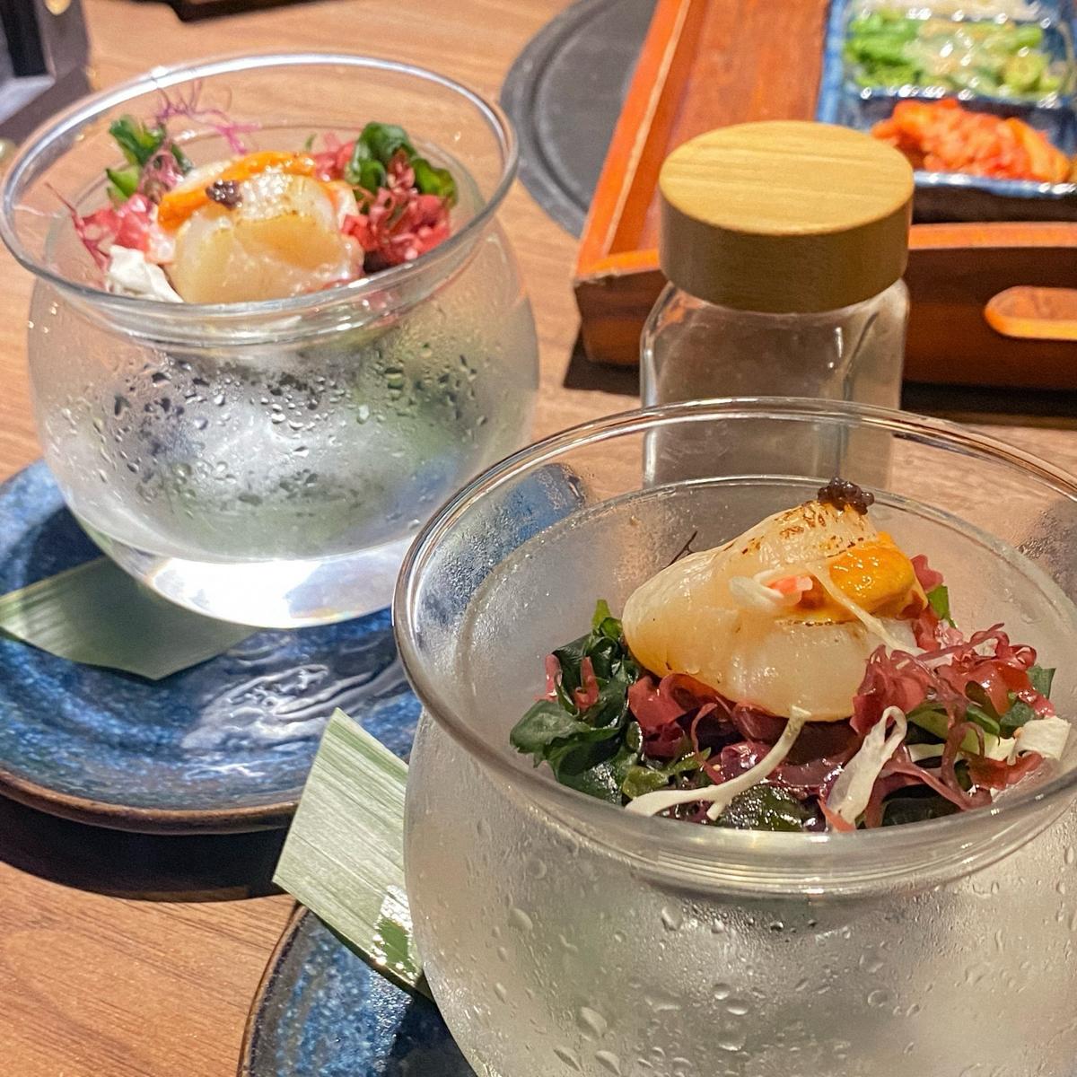 Seaweed and Japanese-style sauce are paired with raw food-grade scallops and sea urchins. It’s really refreshing to eat in one bite~