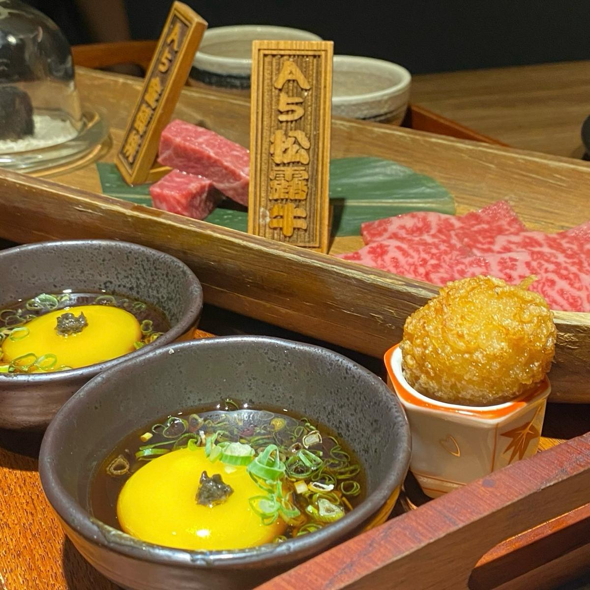 The golden brick yaki is paired with special sesame vinegar, which relieves the greasy feeling of eating too much wagyu, making it refreshing and greasy.