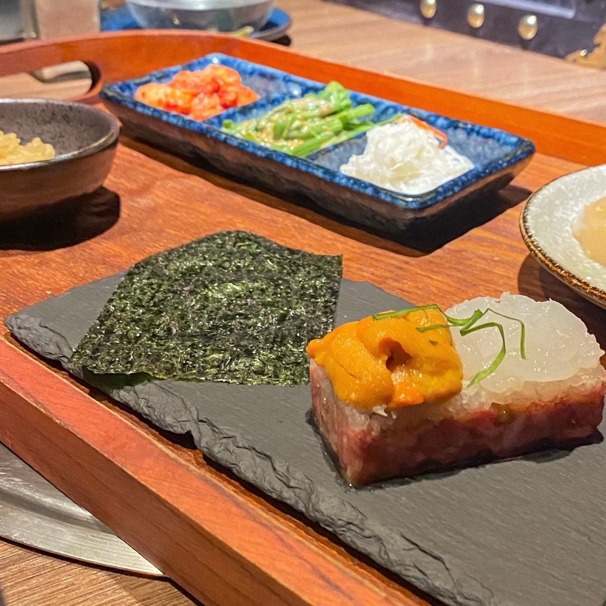 The exaggeration is really exaggeration. Three wishes are fulfilled at once. Just watching the live roasting of seaweed and the visual enjoyment of putting the thick stack on it, I am so happy! The multi-layered taste is really delicious😍