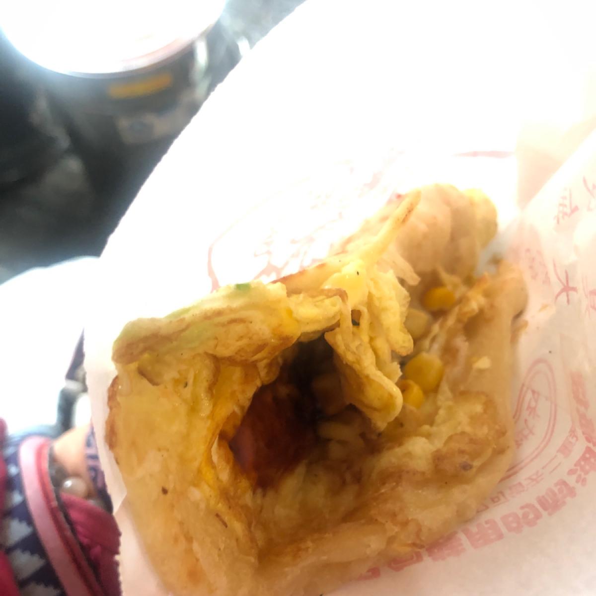 This time I ate a half set (half fried dough sticks pancake) with eggs, corn omelet and cheese egg pancakes. The half set had eggs added with soy sauce and was paired with a crispy pancake skin with sesame seeds on top. It tastes delicious, and my friends also praised the egg pancake skin for being thick and thick, and it tasted very authentic. The cheese egg pancake was also praised as a good combination. I recommend friends who eat vegetarian breakfast to try it!