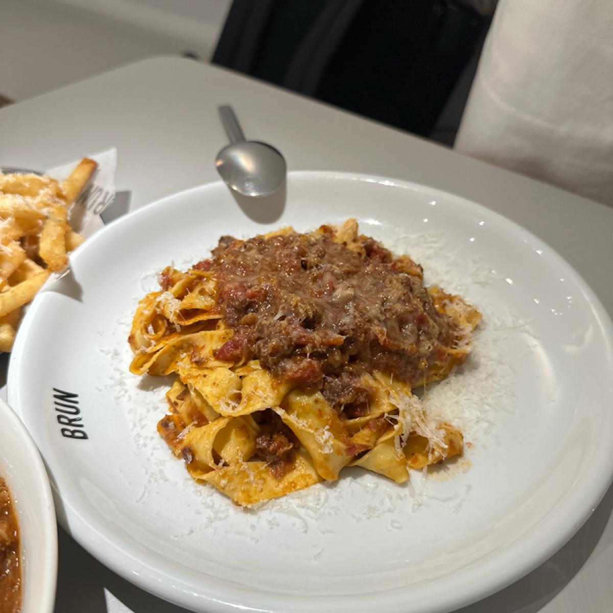 The environment is clean and I like the color scheme. There weren't many meals, so I ordered the tomato meat sauce pasta and truffle fries, which were a test of my skills. The meat sauce was sour and had enough aroma. The noodles were of the Q-bomb type. They were delicious and not too burdensome. They were a little different from ordinary noodles. . In addition, the fries are also of a good quality, crispy and not greasy, which makes me want to eat them all the time. It tastes better with a little dipping sauce. Overall, it feels great. The space, food, and service are all good. If I have to choose, the price is a bit expensive, but considering the location, it is actually quite reasonable. I recommend everyone to give it a try, you won’t regret it!