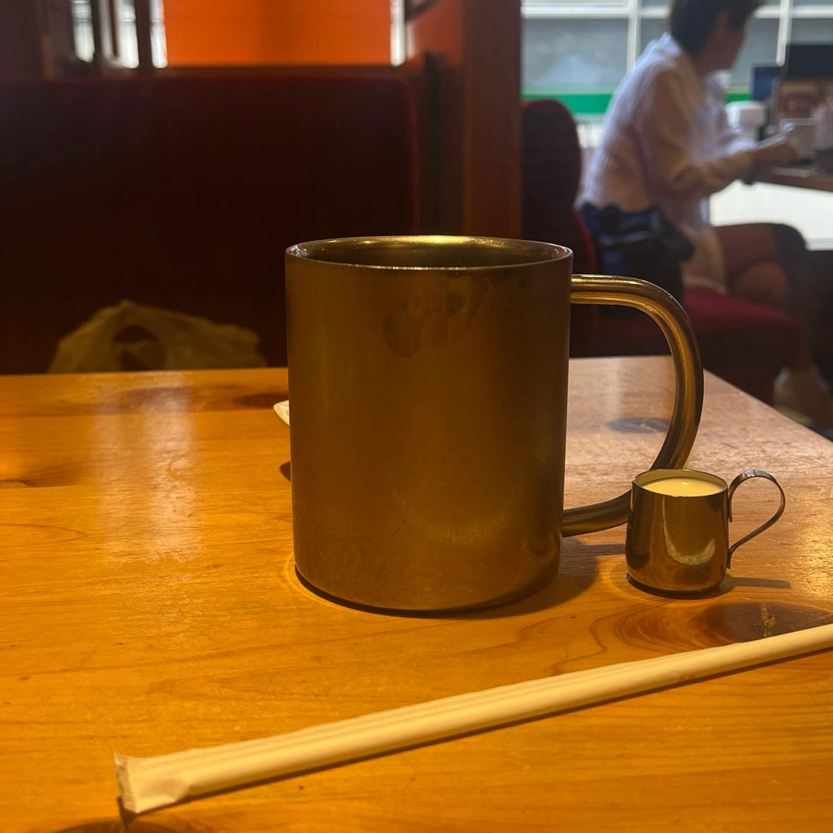 The store has counter seating and table seating, with a wood-based interior and red chairs that make you feel like you're in Komeda Coffee.