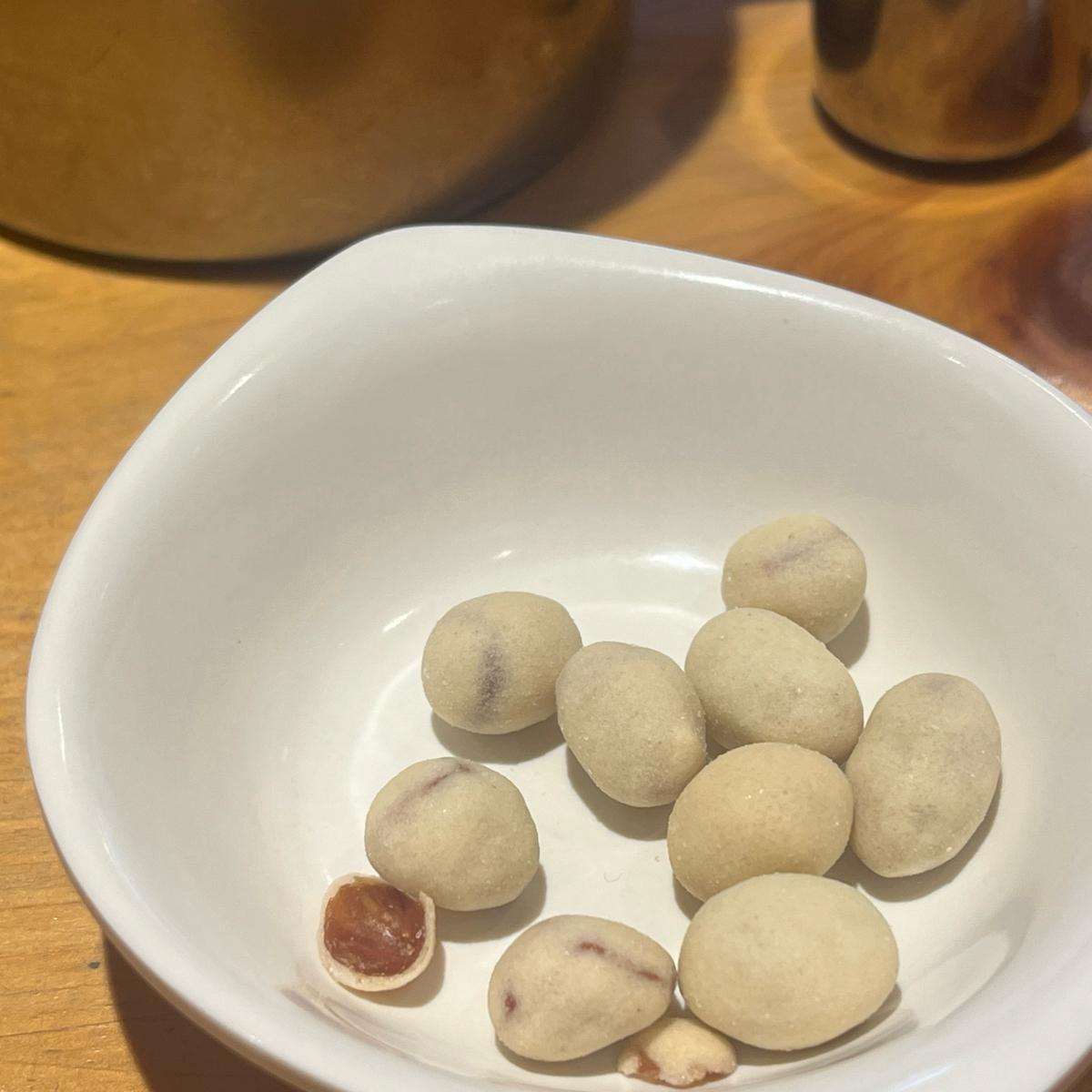 The complimentary bean snacks are delicious and have just the right amount of saltiness.